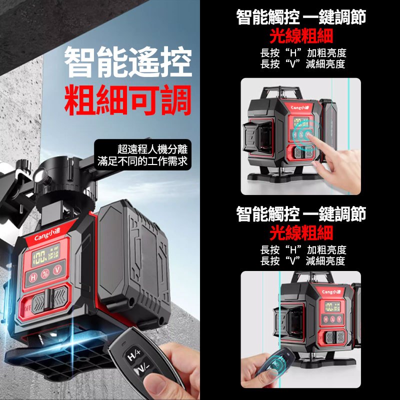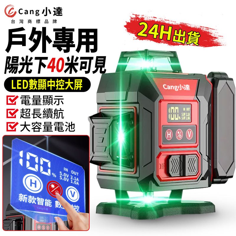 【Cang小達】水平儀 12/16線大電池水平儀 LED電量顯示 高精度強光觸控式紅外線室內外裝修【官方正品 品牌保障】12線高精度戶外專用款【大容量電池*2】|16線高精度戶外專用款【大容量電池*2】ToolsCang小達丨品牌旗艦店