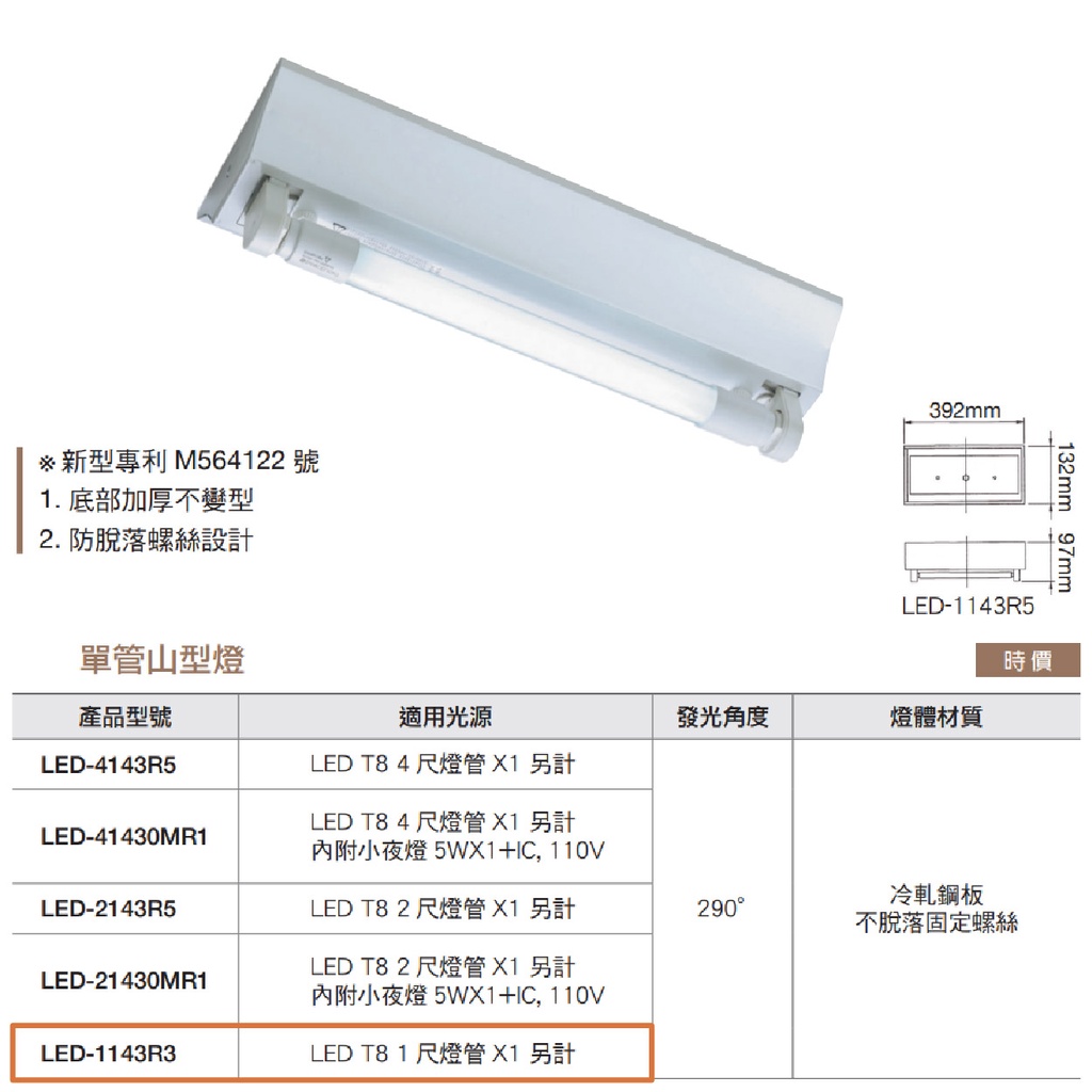 【舞光.LED】T8/1尺單管山型燈空台【實體門市保固兩年】-1143R3 T8山型燈 山形燈 另有二尺三尺四尺山型燈空台+6500K 白光◆ 超商取貨限2組|空台(不含燈管)◆ 超商取貨限2組 ◆|空台+3000K 黃光◆ 超商取貨限2組DREAM LIGHTS 築光燈飾