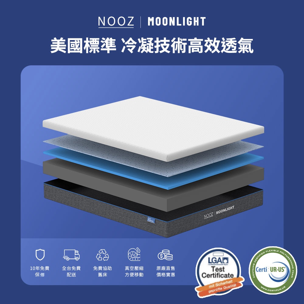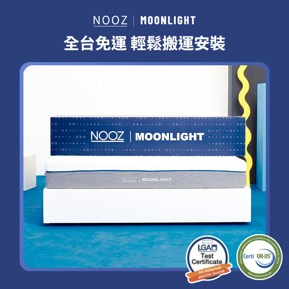 Nooz Moonlight涼感記憶床墊【怕熱者必備】|20cm厚|兒童床墊/單人/雙人/雙人加大/雙人特大雙人特大6X7呎 少量現貨|標準單人3呎 8/22陸續出貨|單人加大3.5呎 8/22陸續出貨|標準雙人5呎 少量現貨|雙人加大6呎 少量現貨MattressesDreamlands精選名床|官方旗艦店Lunio / Nooz床墊