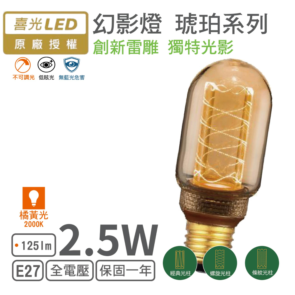 【喜光LED】LED E27/2.5W/幻影燈泡 T45 拉斐爾 (橘黃光)(非調光)【實體門市保固】