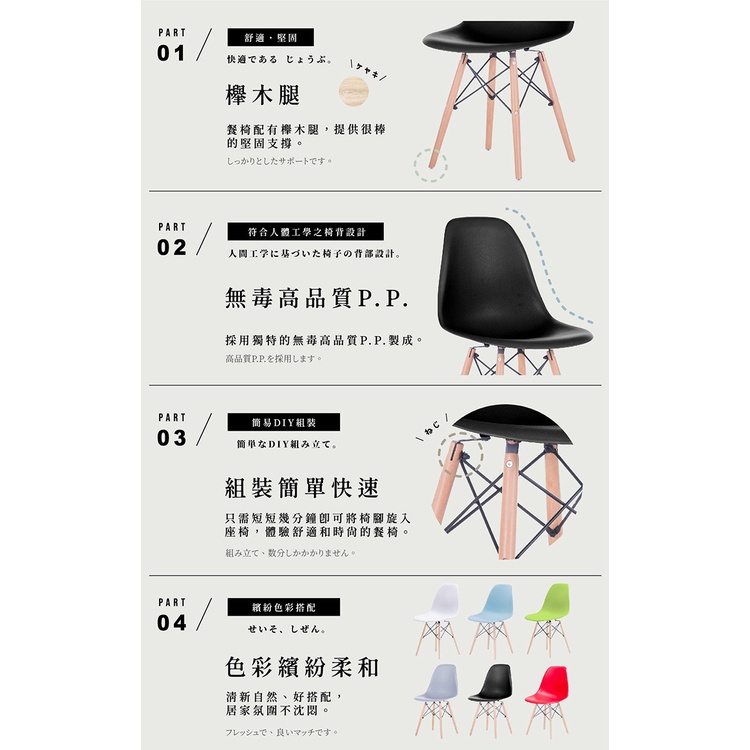 E-home 北歐經典造型餐椅 餐桌椅 化妝椅 椅子 美容椅 書桌椅白色|灰色|藍色|綠色|紅色|黑色|黃色Benches, Chairs & StoolsE-home 美規設計傢俱