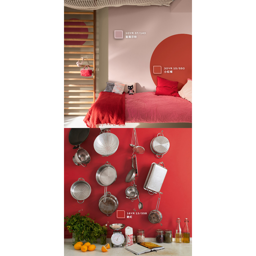 • 【得利官方旗艦店】A991 竹炭健康居除甲醛乳膠漆 精選紅色系 電腦調色(1公升裝)|客製化調色漆