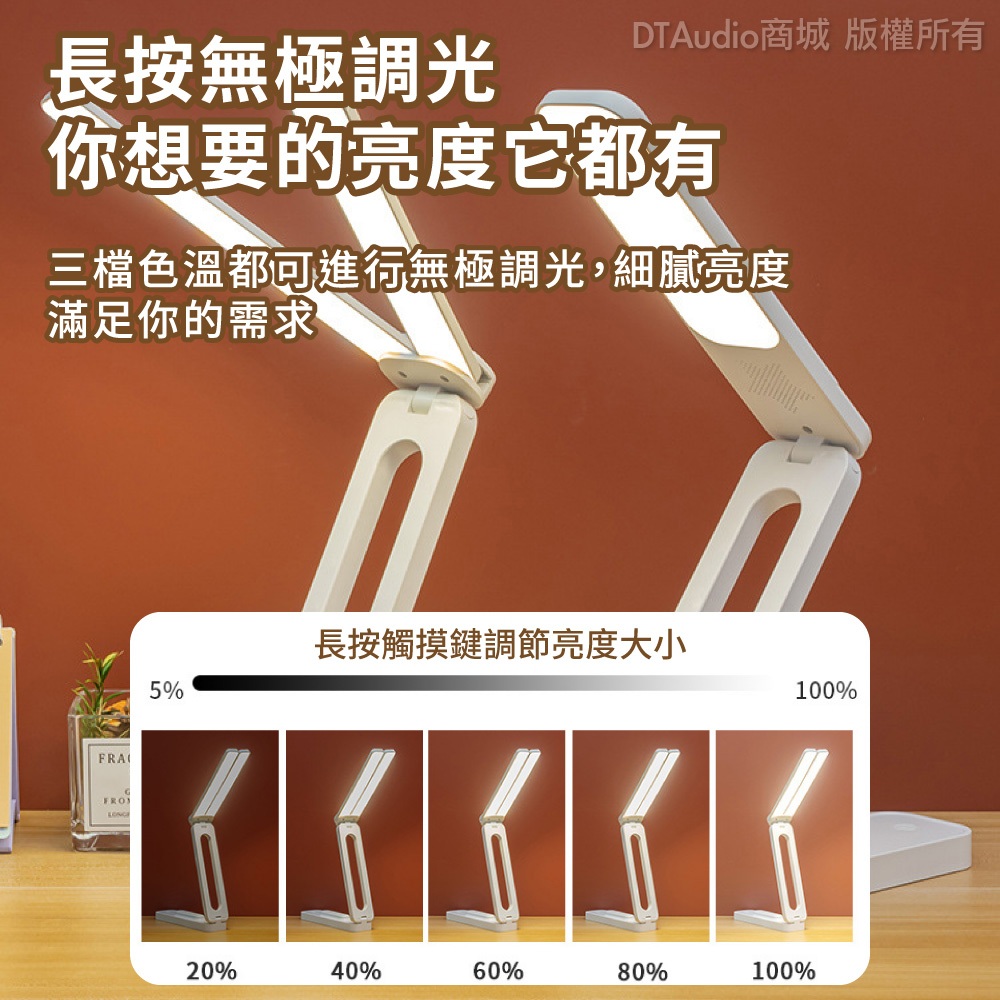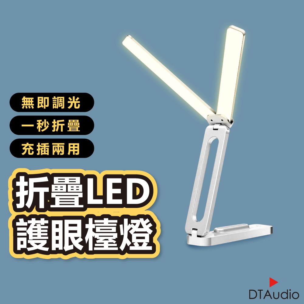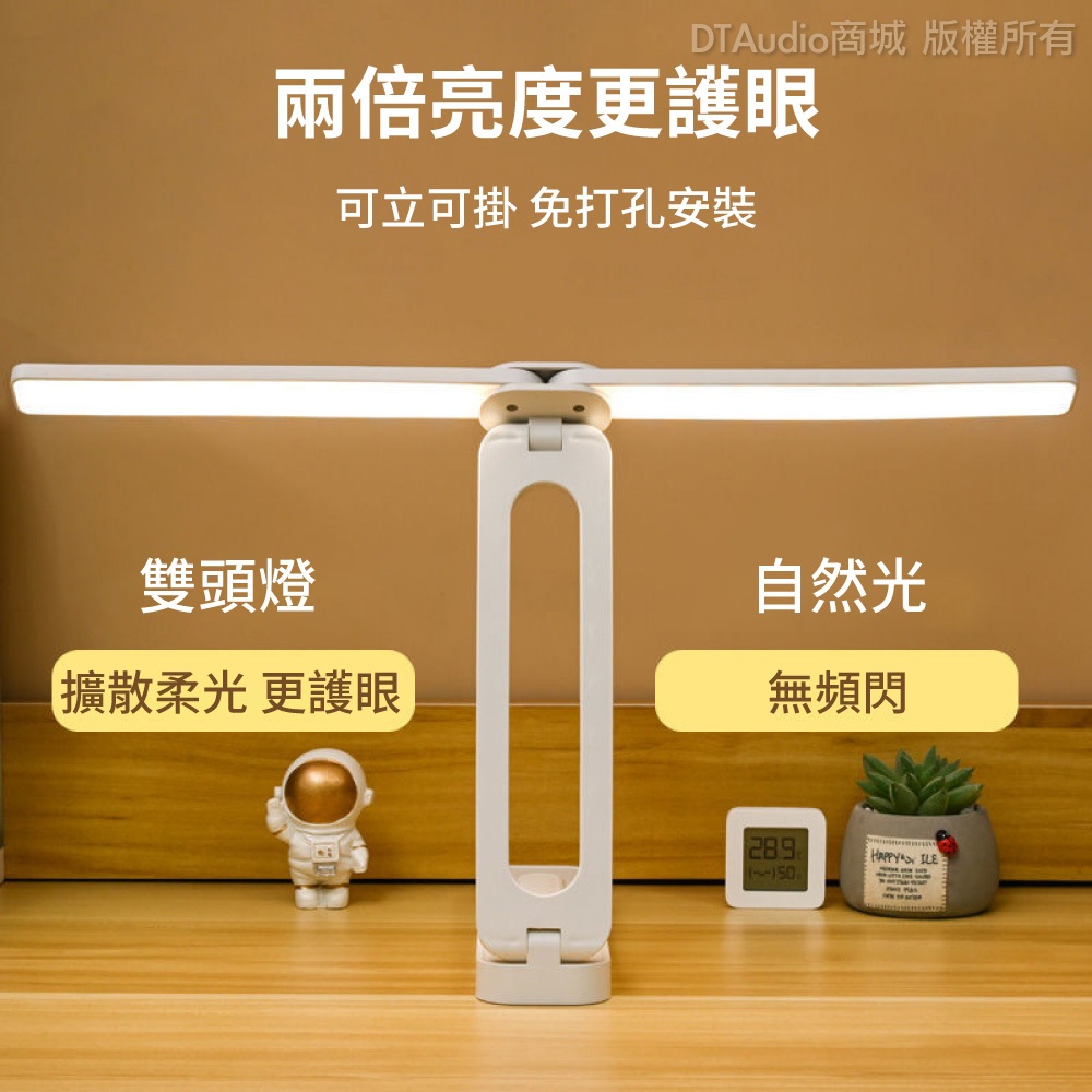 LED雙頭折疊護眼檯燈 可調色溫 折疊收納 LED 充插兩用 檯燈 桌燈 三色調光 雙頭檯燈 護眼檯燈 聆翔旗艦店充電款|插電款DTAudio 聆翔官方旗艦店-你的耳機喇叭專門家