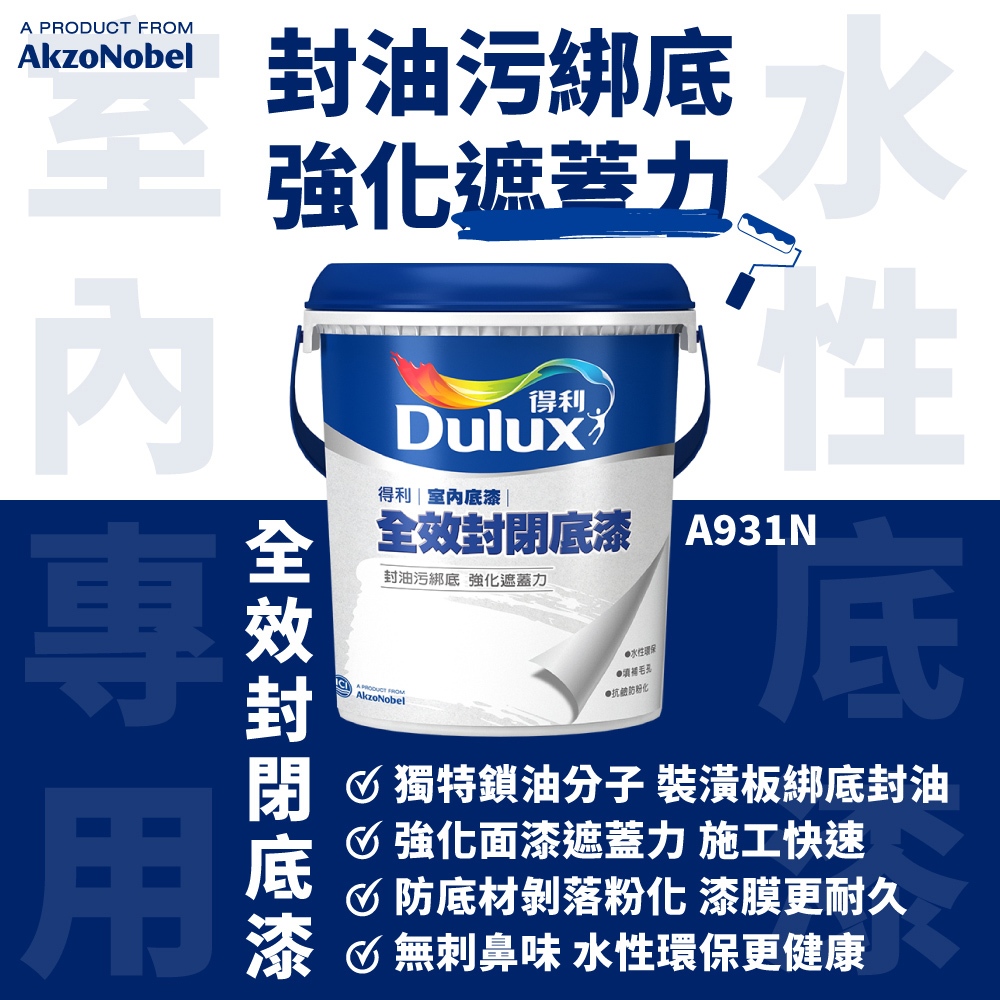 【得利官方旗艦店】A931 全效封閉底漆(1公升裝)白色|實心白Wall Paints & CoatingsDulux得利塗料官方旗艦店