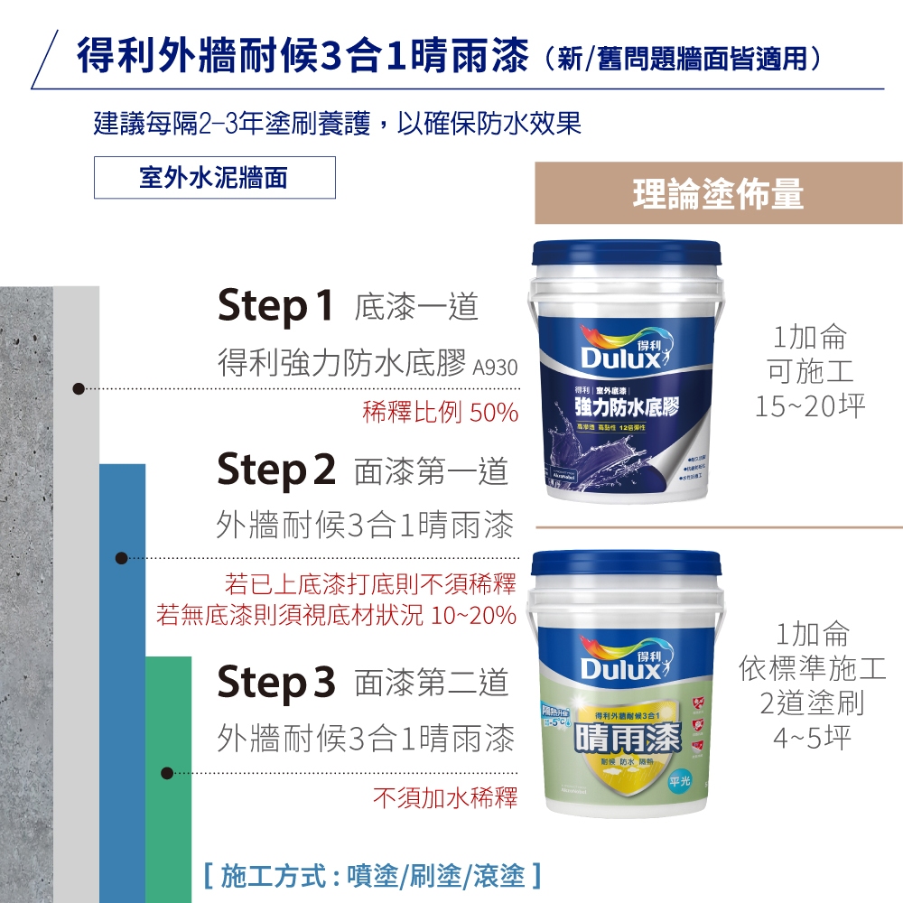 【得利官方旗艦店】A918 外牆耐候3合1晴雨漆 平光(1加侖裝)玉蘭|白色Wall Paints & CoatingsDulux得利塗料官方旗艦店