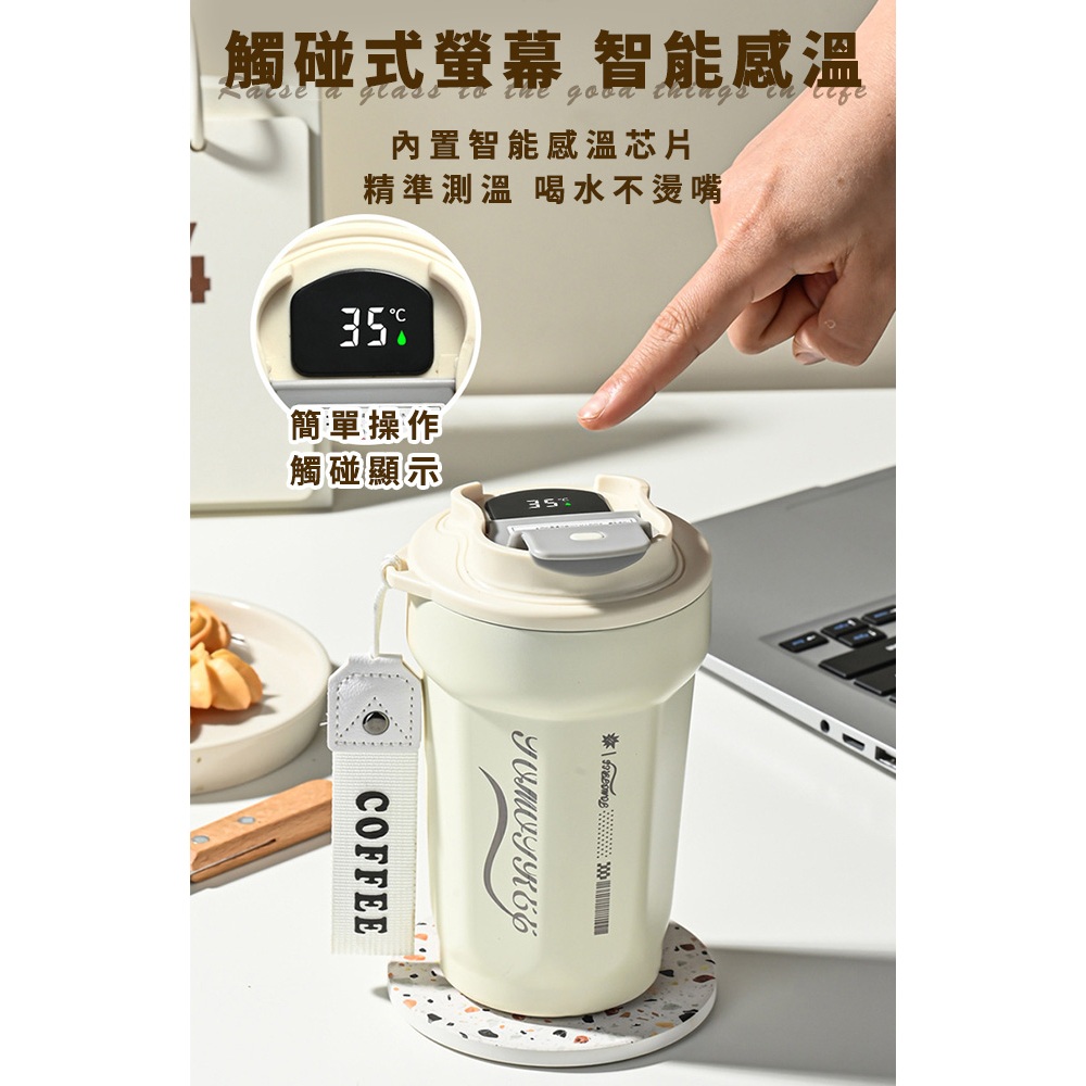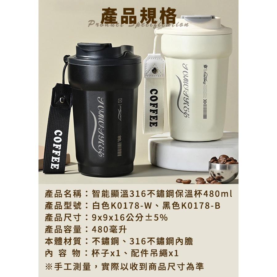 臺灣現貨(隔日出貨)【JUSTCOOK 廚藝寶】智能顯溫316不鏽鋼保溫杯480ml 飲料杯 環保杯 咖啡杯 保冷杯白色|黑色|擦車濕纸巾|翠綠色Water Bottles & AccessoriesEDISON 愛迪生