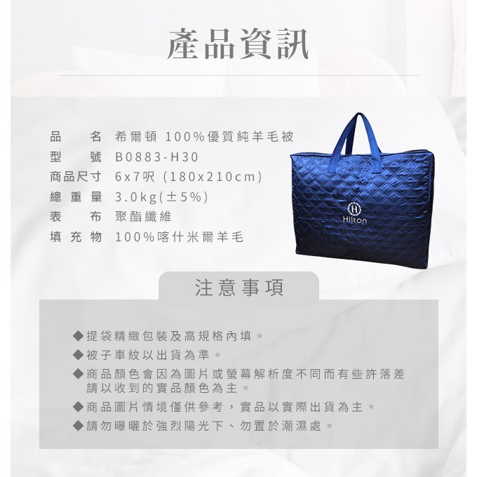 Hilton希爾頓100%喀什米爾優質小羔羊毛被 3.0kg白色Hilton希爾頓100%喀什米爾優質小羔羊毛被 3.0kg白色Blankets, Comforters & QuiltsCERES席瑞絲批發團購