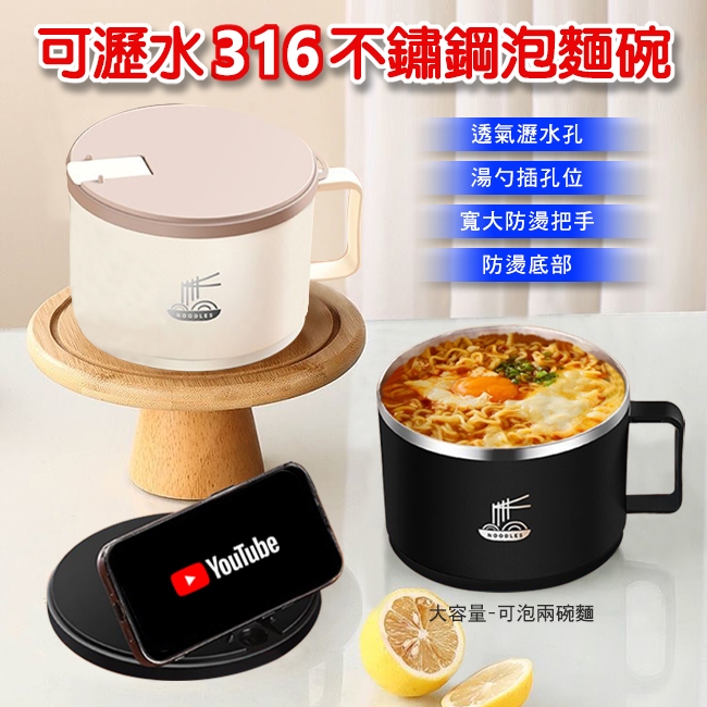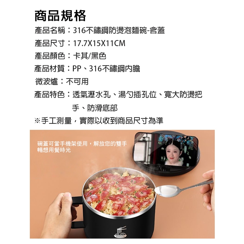 臺灣現貨(隔日出貨)可瀝水316不鏽鋼泡麵碗-兩色任選 鐵腕 泡麵碗 不鏽鋼碗可瀝水316不鏽鋼泡麵碗-卡其|可瀝水316不鏽鋼泡麵碗-黑|不鏽鋼防燙夾BowlsCERES席瑞絲批發團購