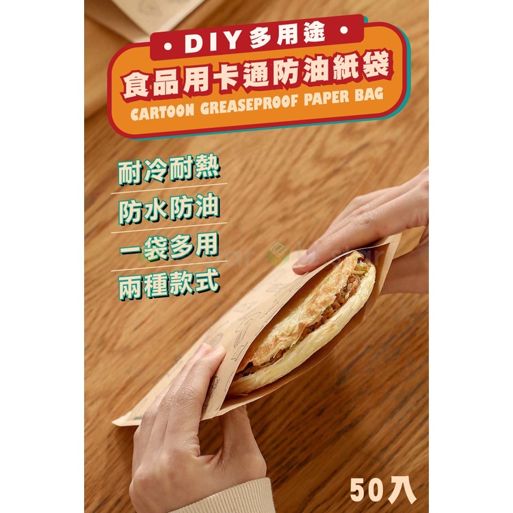 【FaSoLa】DIY多用途食品用卡通防油紙袋(50入) 公司貨|美食袋 簡易食品袋 防水防油 淋膜紙袋 官方直營小款|大款Spatulas & Cooking TweezersFaSoLa品牌旗艦店