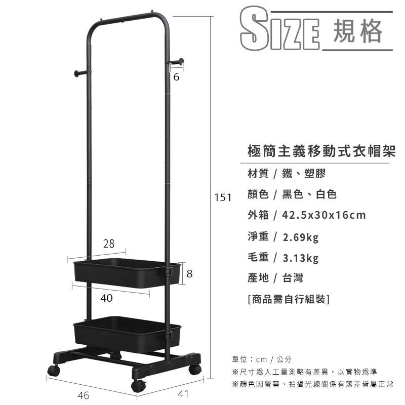 dayneeds 極簡主義移動式衣帽架 洋裝架/展示架/吊衣架/收納架/掛衣架/置物架/衣櫥架/附輪霧黑|霧白Hangers & Pegsdayneeds收納生活館