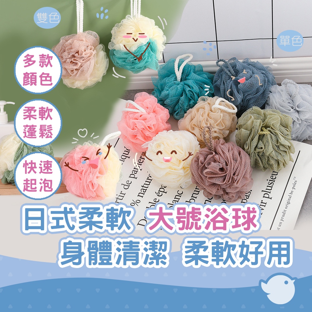 【CHL】日式浴球 柔軟大號 洗澡浴花 沐浴 皮膚刷洗 可以吊掛 身體清潔 柔軟好用 多款顏色 隨機出貨 單色 雙色單色 (隨機出貨)|雙色 (隨機出貨)Bath Brushes & LoofahsCHL-日本文具進口商 零售 批發