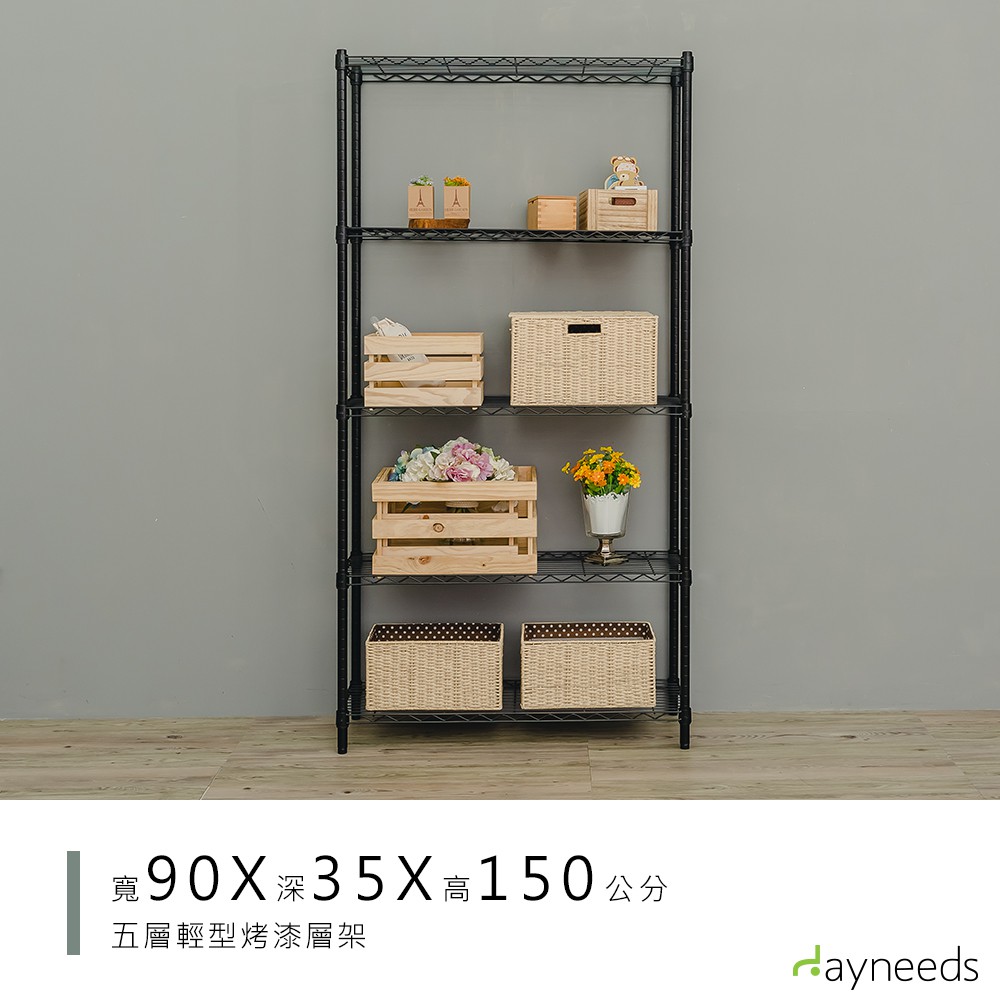 dayneeds 輕型五層置物架90x35x150公分(烤漆黑白)鐵力士架 收納架 廚房架 置物櫃黑色|白色Shelves & Racksdayneeds收納生活館