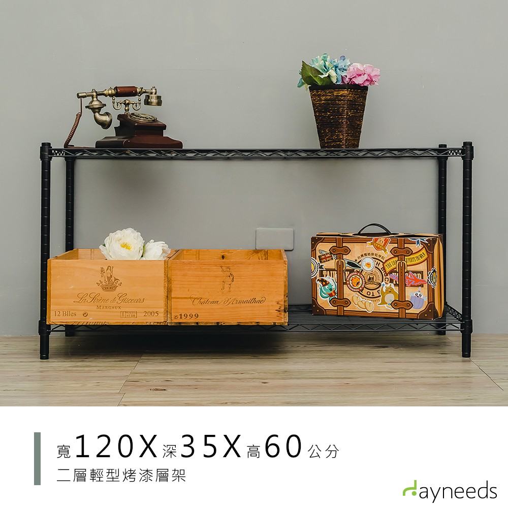 dayneeds 輕型二層置物架120x35x60公分(烤漆兩色)鐵力士架 收納架 廚房架 置物櫃黑色|白色Shelves & Racksdayneeds收納生活館