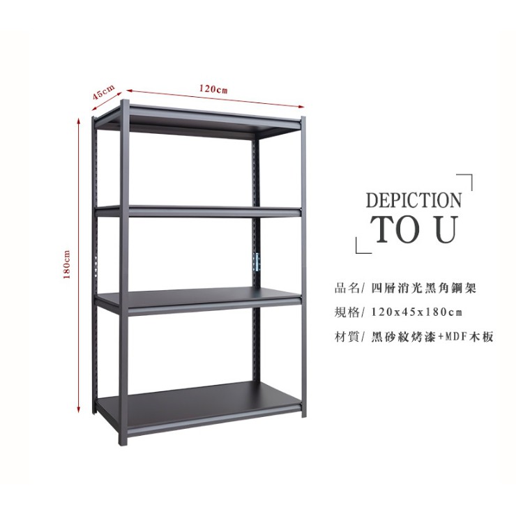 dayneeds 角鋼四層置物架120x45x180公分(消光黑)角鋼架 黑砂紋 強力荷重 角鋼鐵架 台灣製造鐵架收納dayneeds 角鋼四層置物架120x45x180公分(消光黑)角鋼架 黑砂紋 強力荷重 角鋼鐵架 台灣製造鐵架收納Shelves & Racksdayneeds收納生活館