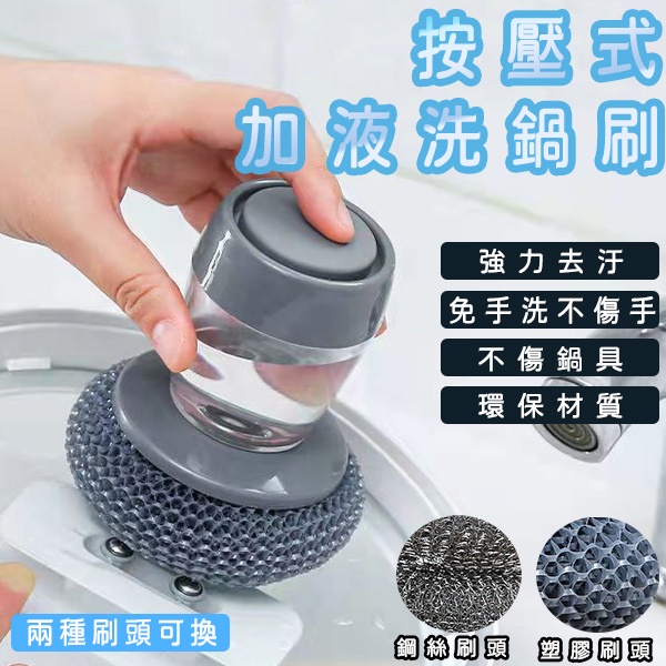 按壓式 洗鍋刷 洗碗刷 清潔刷 菜瓜布 多功能清潔刷 可加液清潔刷 懒人刷鍋神器洗鍋刷 鋼絲球|洗鍋刷 PET球|替換 鋼絲球|替換 PET球Sponges & Scouring PadsDA量販店