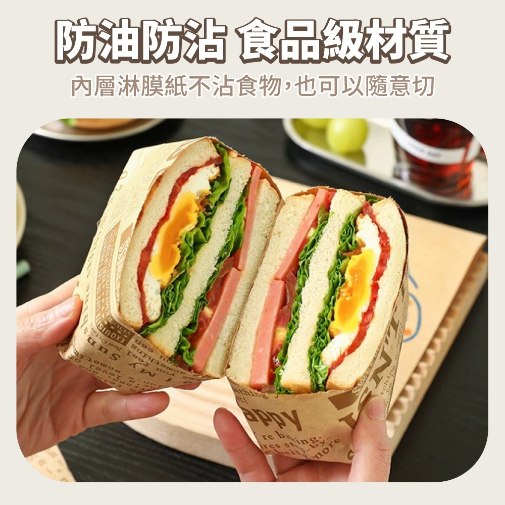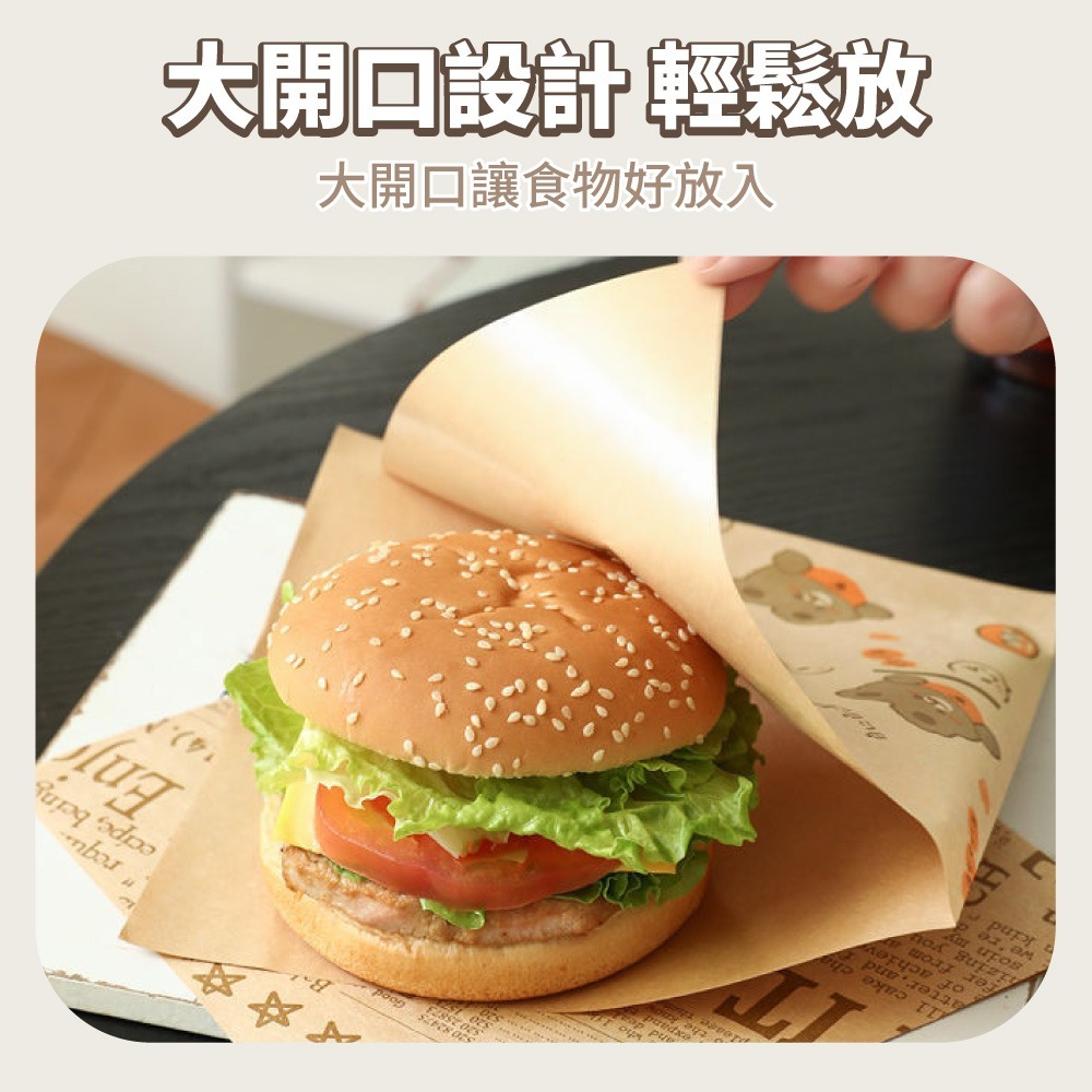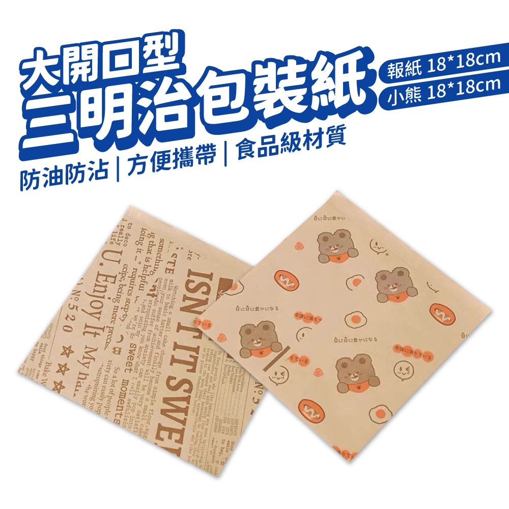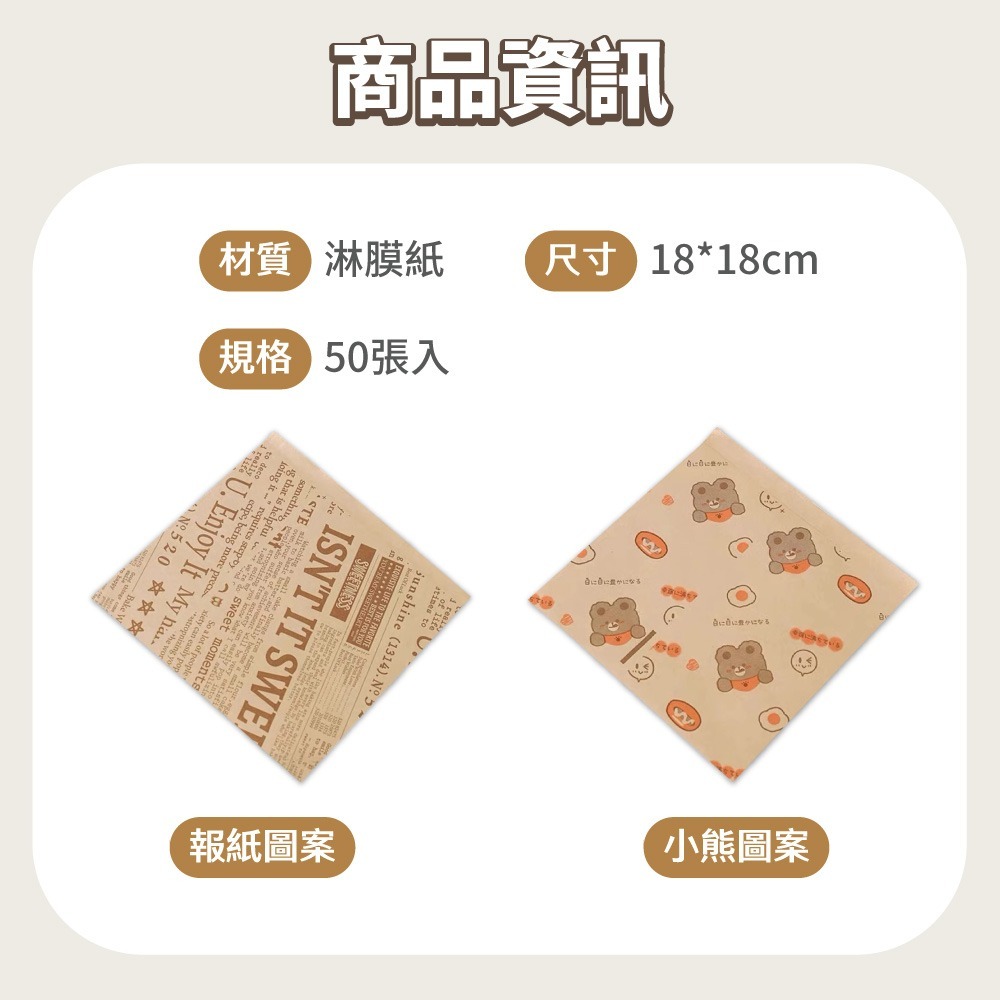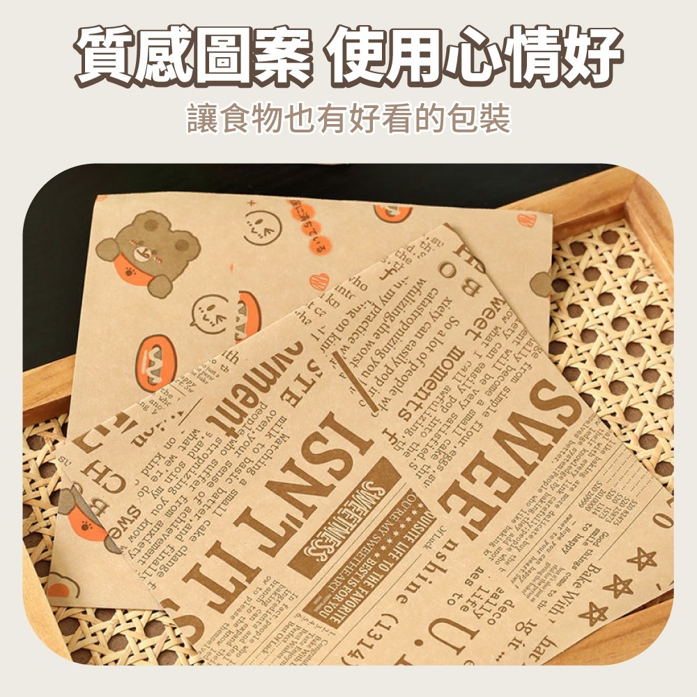 漢堡包裝紙 三明治防油紙袋 本色18x18cm 50入 吸油防油食品級紙袋小熊款|報紙款Bakewares & DecorationsDA量販店