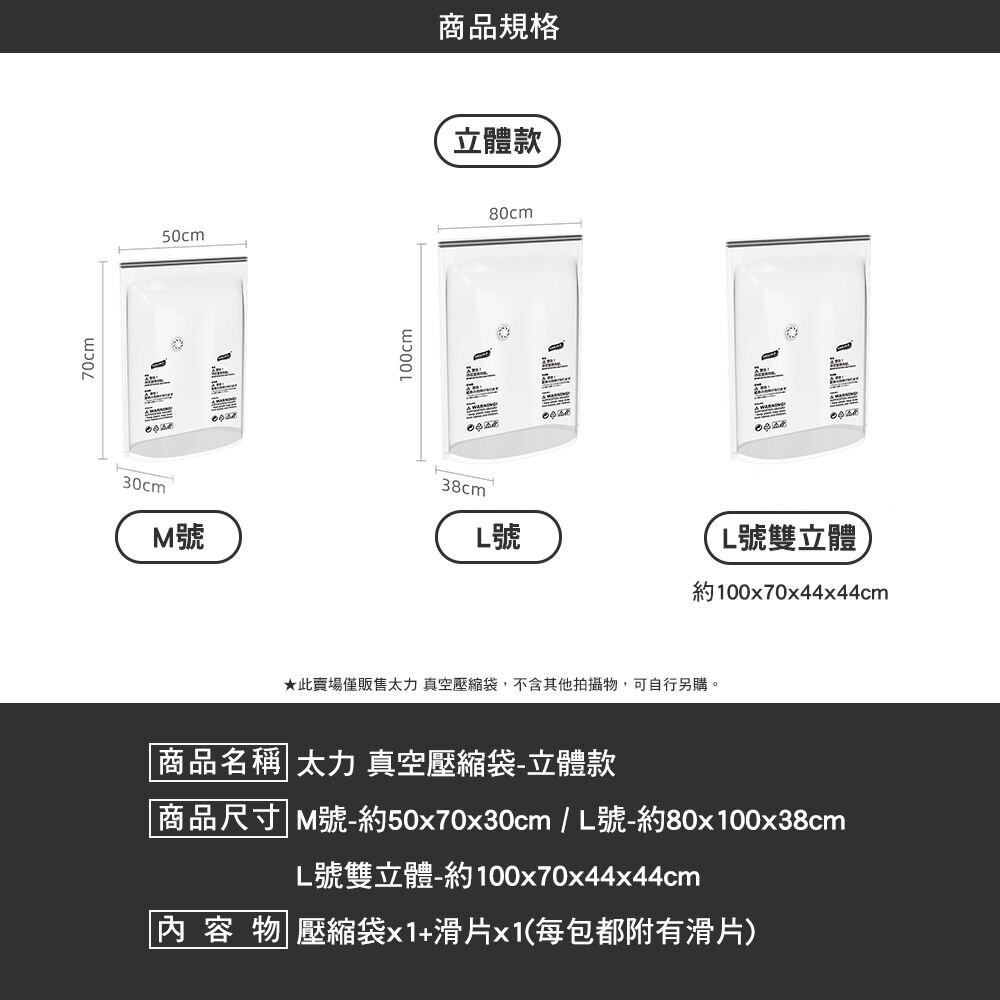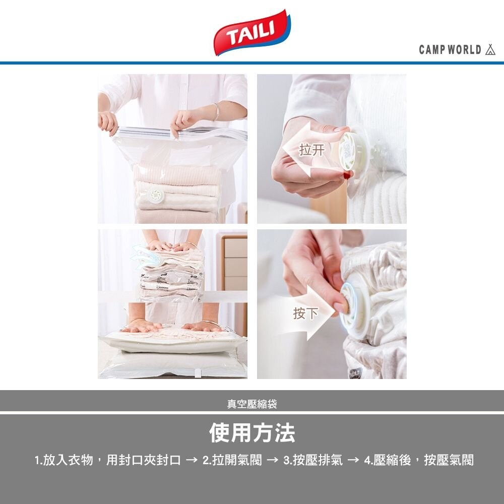 太力 真空壓縮袋 平面款 立體款 防潮衣物袋 棉被收納袋 衣物收納袋 旅行 居家 露營平面款-S號 45*70cm|平面款-M號 56*80cm|平面款-L號 80*100cm|平面款-XL號 120*100cm|立體款-M號 50*70*30cm|立體款-L號 80*100*38cm|立體款-L號雙立體OthersCAMP WORLD 逐露 天下 露營 登山 生活 商城旗艦店