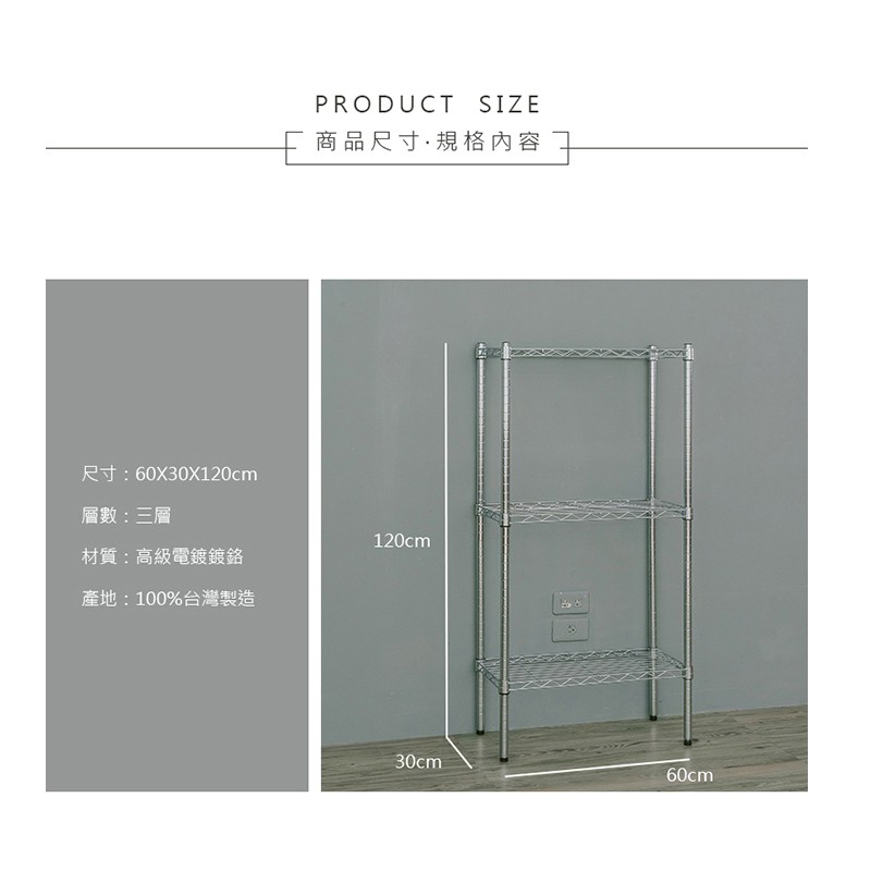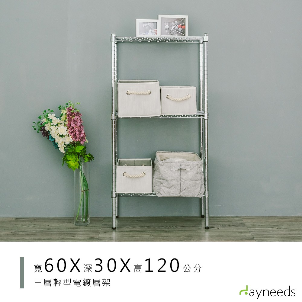 dayneeds 輕型三層置物架60x30x120公分(電鍍插管) 鐵力士架 收納架 廚房架 置物櫃電鍍Shelves & Racksdayneeds收納生活館