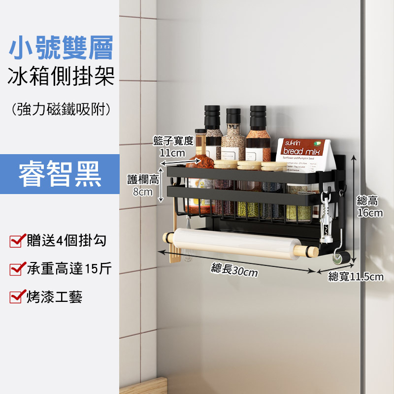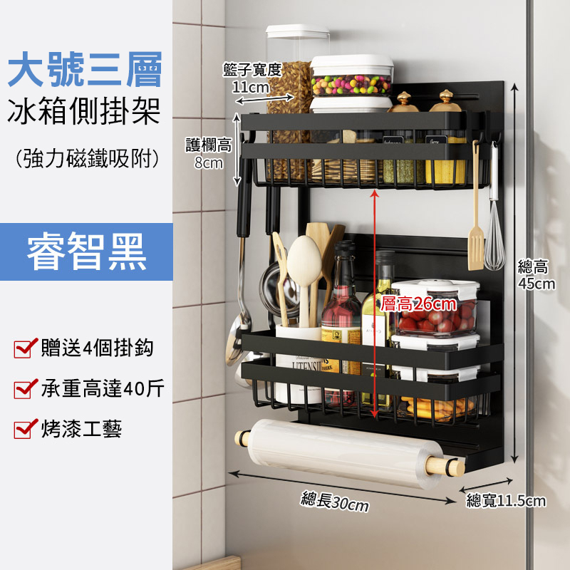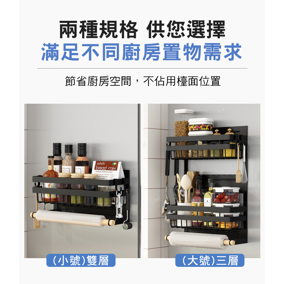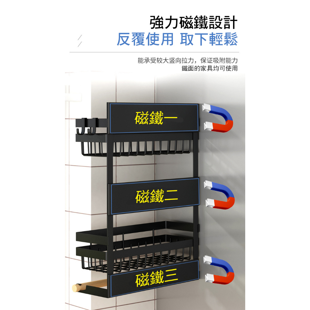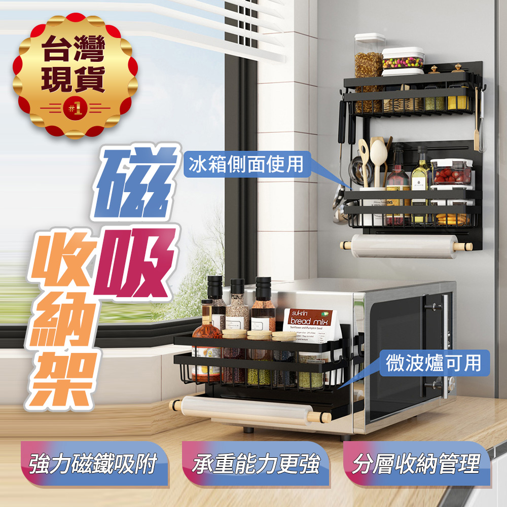 【台灣現貨】磁吸置物架(黑)-雙層/三層加大 無痕收納架 廚房收納架 磁吸式收納架 日式磁吸置物架 冰箱磁鐵置物架雙層|三層加大-【超材請選宅配】Shelves & RacksDiscovery Adventures 探索旗艦店