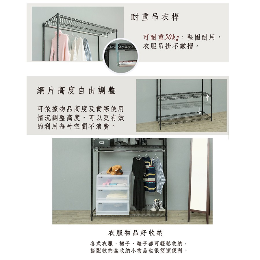 dayneeds 荷重型三層雙桿衣櫥架120x45x210公分(電鍍烤漆黑/白)鐵力士架 收納架 廚房架 置物櫃烤漆黑|烤漆白|電鍍(插管)Wardrobesdayneeds收納生活館