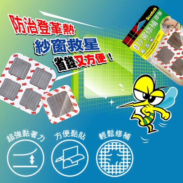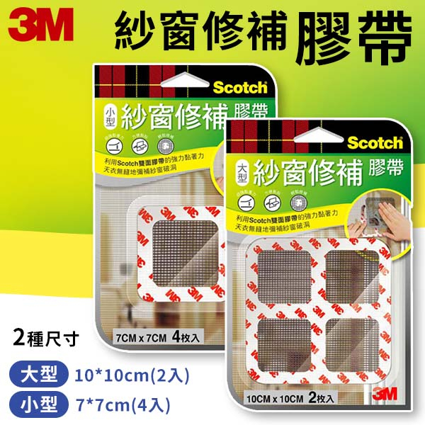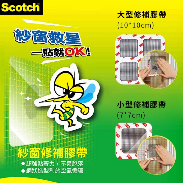 3M 紗窗修補貼 補洞膠帶 修補貼片 紗窗網 紗窗修補膠帶 膠帶 膠布 紗窗 防蚊必備 紗窗貼紗窗修復10×10cm(2入組)|7×7cm(4入組)Industrial Adhesives & TapesDA量販店
