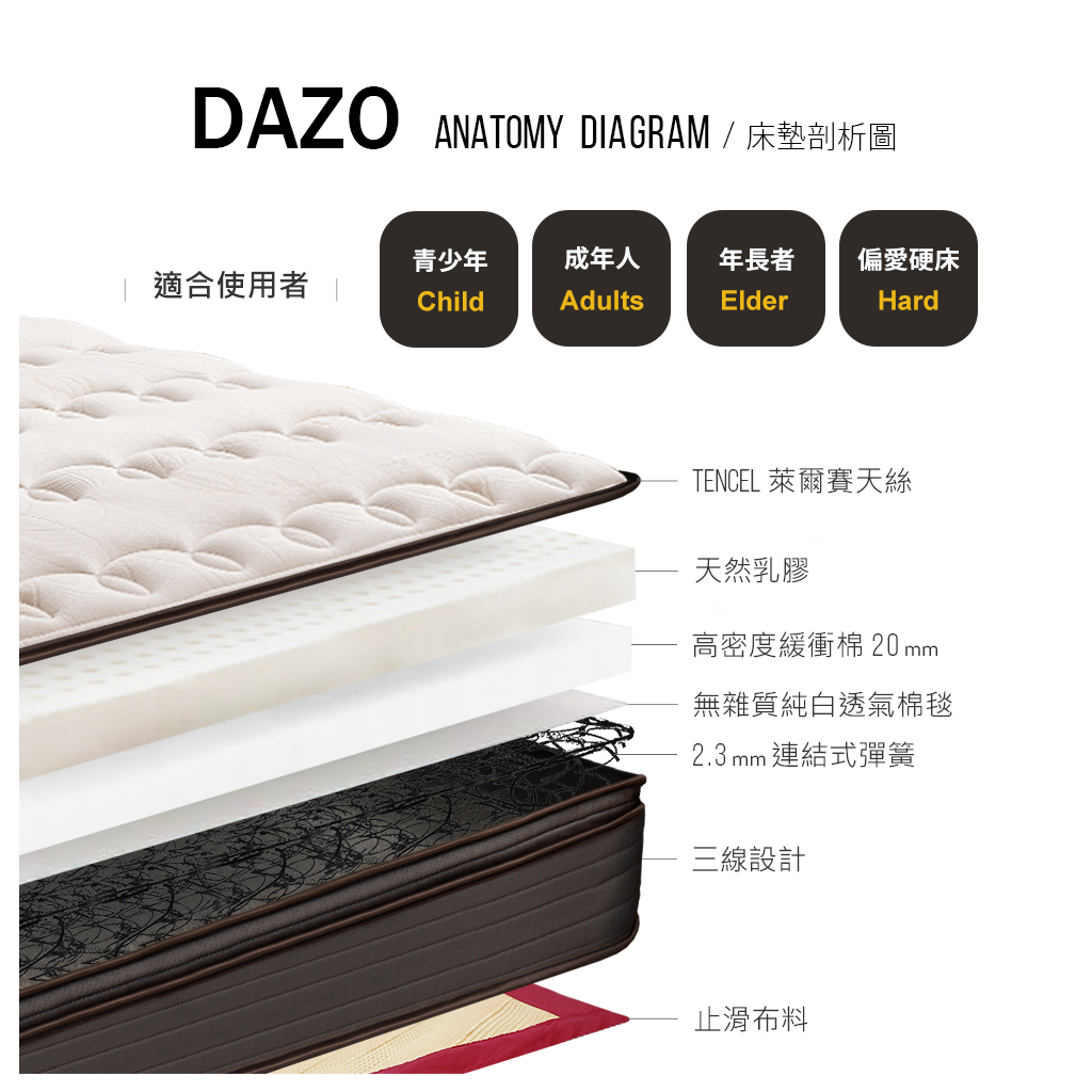 【 Dazo 】偏硬耐用|真三線 萊爾賽天絲 乳膠 彈簧床墊 藤面涼蓆 床墊【 蝦幣 10 倍送 】單人加大 3.5 尺|標準雙人 5 尺|雙人加大 6 尺MattressesDazo 得舒官方旗艦店