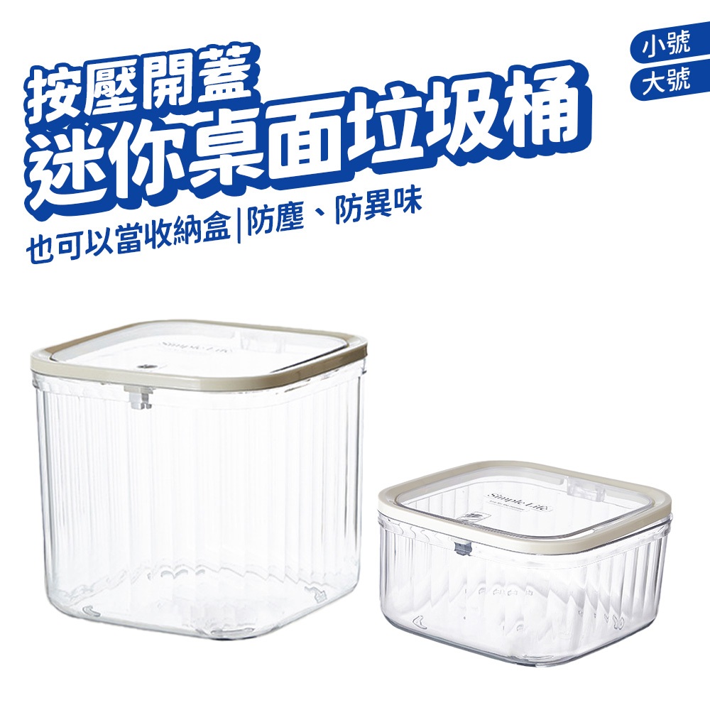 桌面垃圾桶 迷你桌面垃圾桶 彈蓋垃圾桶 小垃圾桶 按壓垃圾桶 收納盒 迷你垃圾桶透明白/ 小|透明白/ 大Trash & Recycling BinsDA量販店