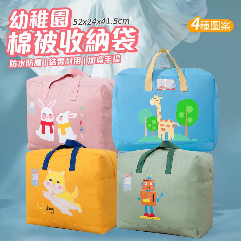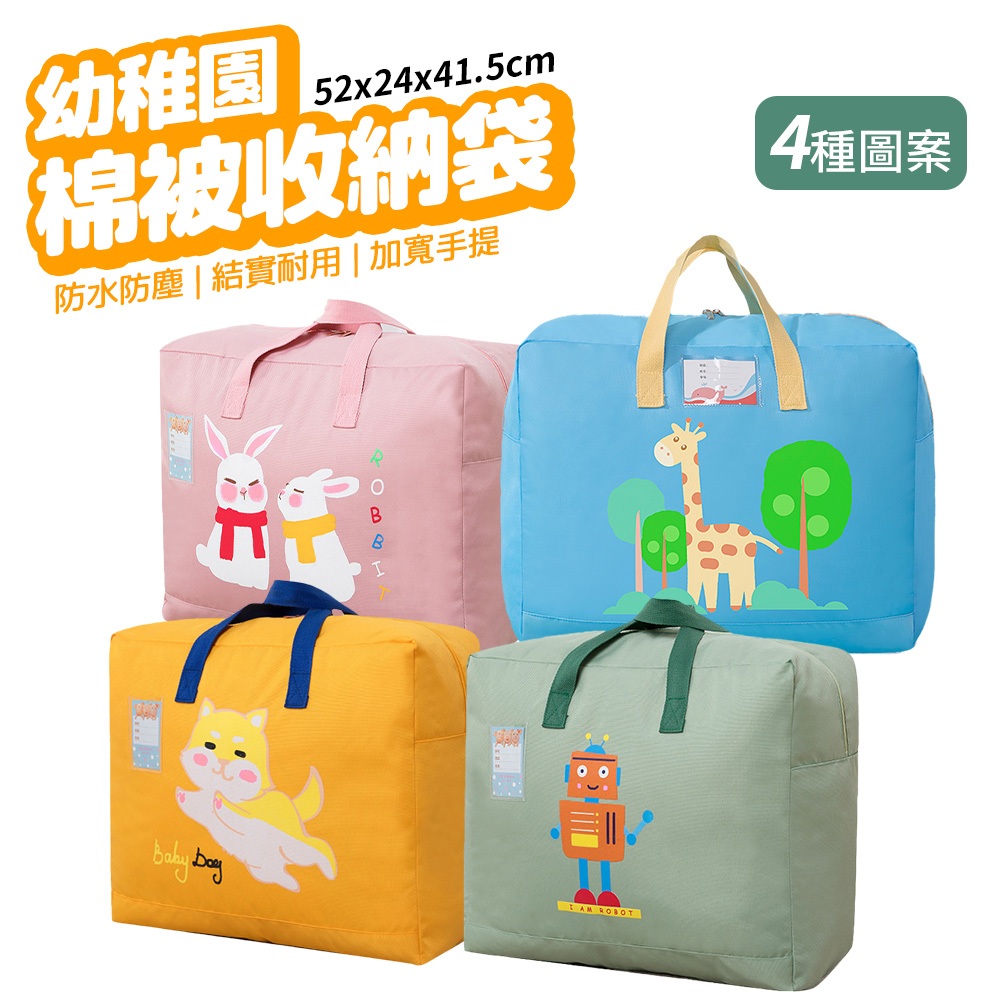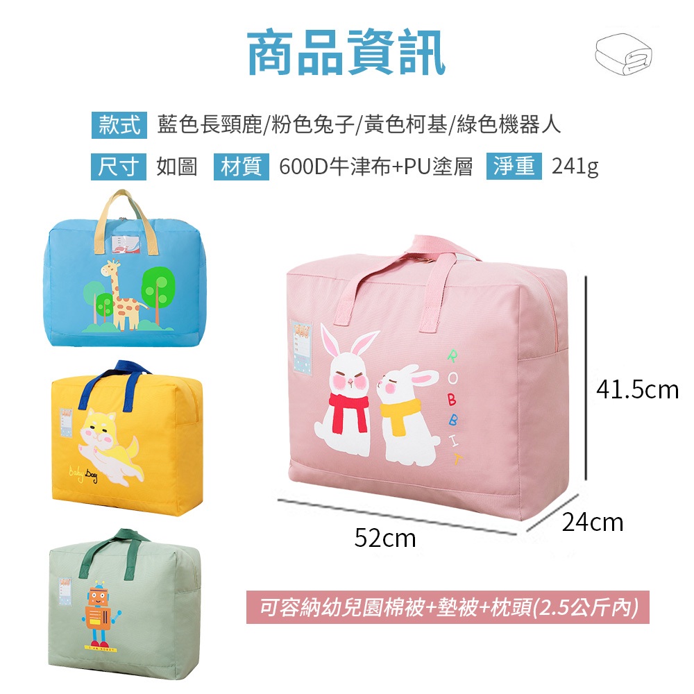 棉被收納袋 幼稚園棉被袋 棉被袋 衣物收納袋 行李打包袋 收納袋 旅行袋 防水防塵 防塵袋藍色長頸鹿|綠色機器人|粉色兔子|黃色柯基Wardrobe OrganizersDA量販店