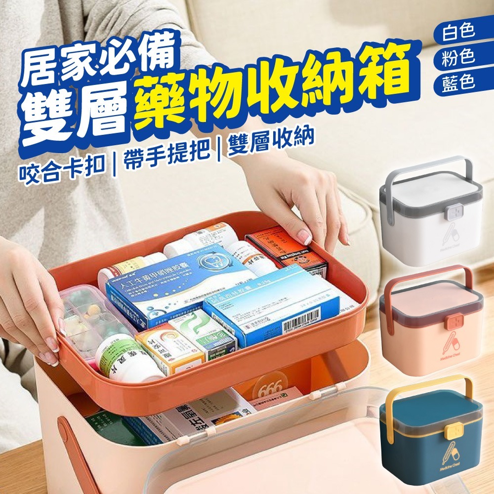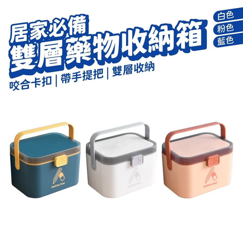 藥物收納盒 醫藥箱 手提收納盒 盒子收納盒 手提收納箱 雙層收納盒 置物盒 化妝箱 手提箱 整理箱 急救箱 萬用箱白|粉|藍Desk OrganizersDA量販店