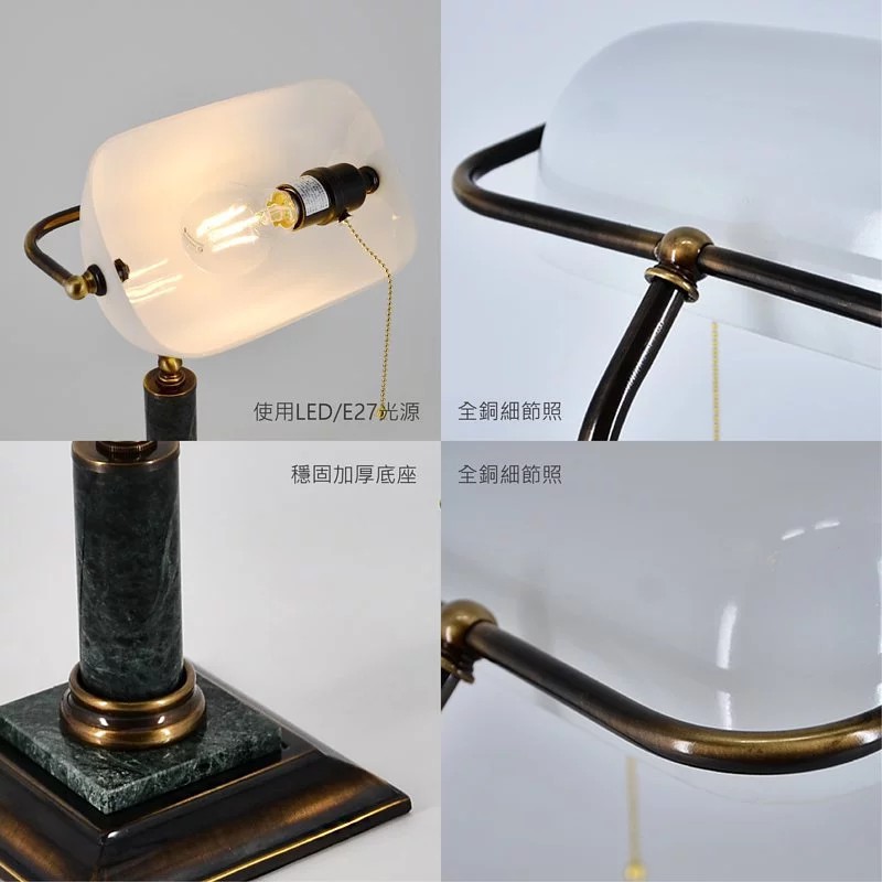 經典全銅大理石座白色 銀行桌燈 桌燈 書桌燈 閱讀燈 檯燈 |手工玻璃圖書館燈【實體門市】桌燈|桌燈+6.5w2700K類鎢絲燈泡氣氛用|桌燈+8.5W黃光飛利浦超極光宜閱讀DREAM LIGHTS 築光燈飾