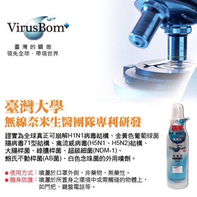 VirusBom 病毒崩100ppm/病毒崩300ppm (500ml) 台大病毒崩