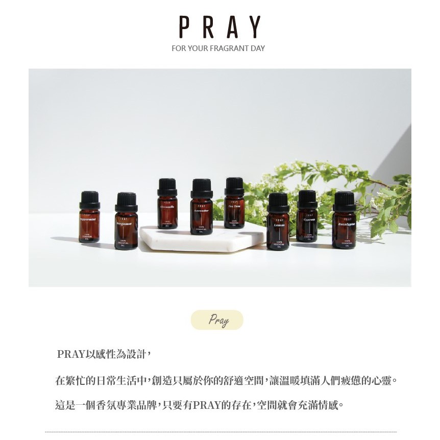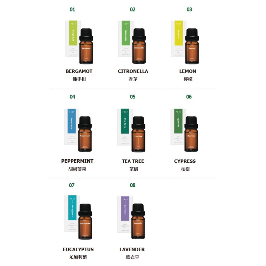 【韓國 PRAY】天然單方植萃精油 10ml/8款香味可選薰衣草|佛手柑|香茅|檸檬|胡椒薄荷|茶樹|柏樹|尤加利葉Essential OilsEPOCHSIA CHOICE