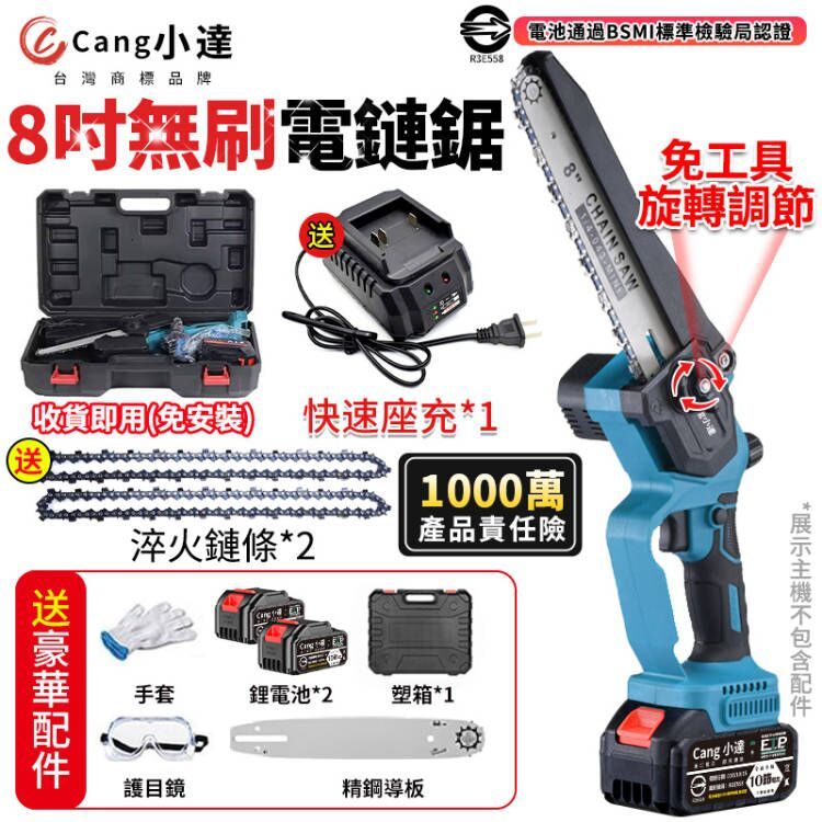 【Cang小達】電鏈鋸 無刷8吋鏈鋸 鏈鋸機 (免安裝)鏈鋸 伐木鋸 電動鏈鋸 單手鋸 認證電池BSMI:R3E5588吋無刷電鏈鋸【裸機】不帶電池充電器|8吋無刷電鏈鋸【五節一電】座充+鏈條*2|8吋無刷電鏈鋸【五節兩電】座充+鏈條*2|8吋無刷電鏈鋸【十節一電】座充+鏈條*2|8吋無刷電鏈鋸【十節兩電】座充+鏈條*2ToolsCang小達丨品牌旗艦店