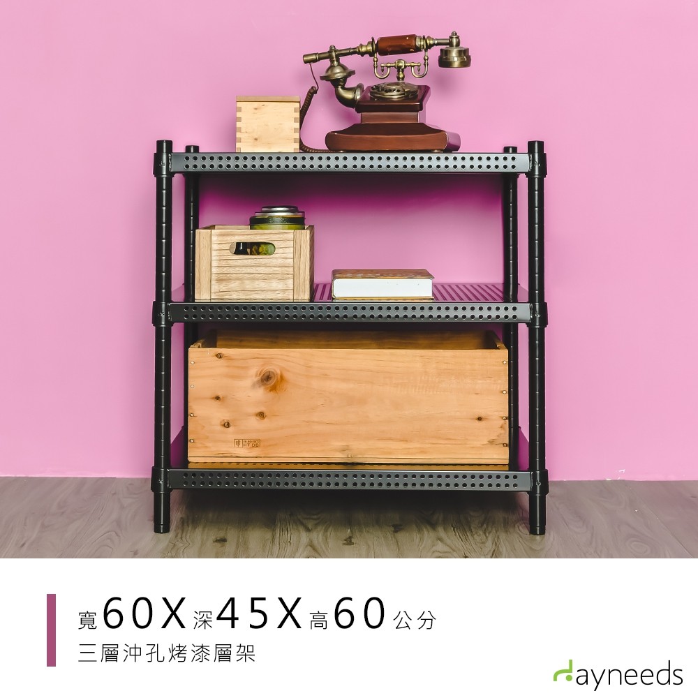 dayneeds 沖孔三層置物架60x45x60公分(烤漆黑)沖孔架 耐荷重 可調整 家具 DIY架子 沖孔板鐵架dayneeds 沖孔三層置物架60x45x60公分(烤漆黑)沖孔架 耐荷重 可調整 家具 DIY架子 沖孔板鐵架Shelves & Racksdayneeds收納生活館