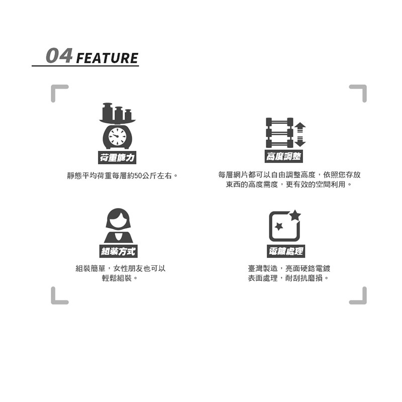 【FL生活+】快裝式岩熔碳鋼四層耐重置物架(FL-263)30x50x118公分 免螺絲角鋼架 展示 層架 廚房層架四層置物架-30*50*118公分Shelves & RacksFL生活+ 官方直營旗艦店