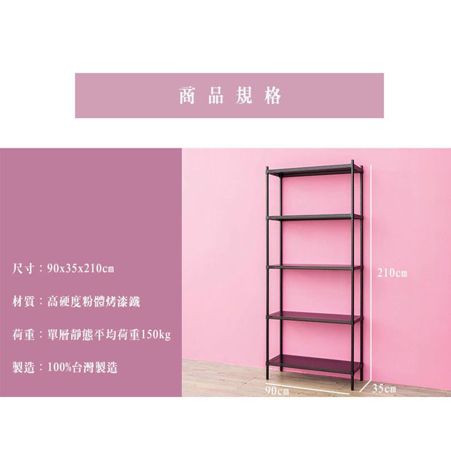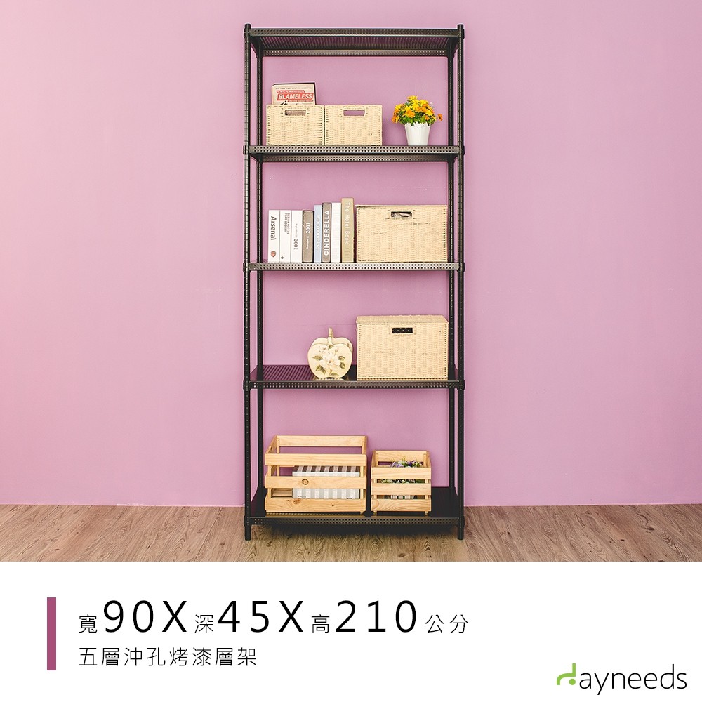 dayneeds 沖孔五層置物架90x35x210公分(烤漆兩色)層架 鐵架 收納架 倉庫 直播展示架黑色|白色Shelves & Racksdayneeds收納生活館