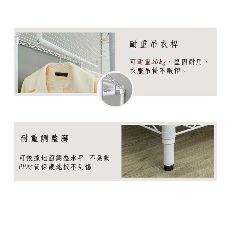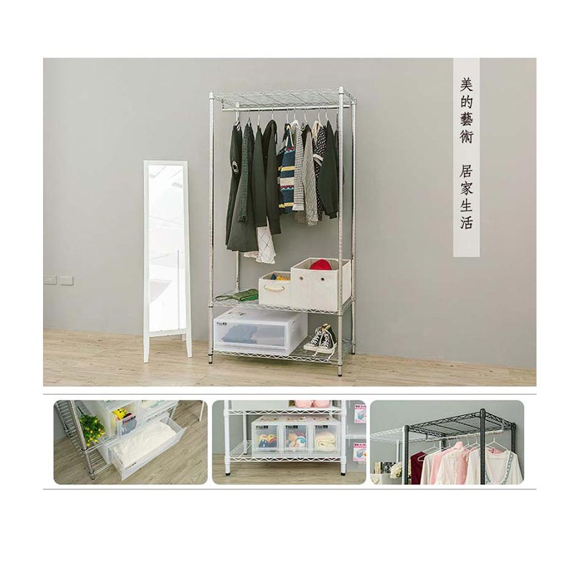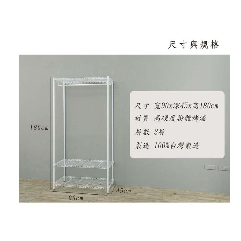 dayneeds 三層單桿衣櫥架90x45x180cm(烤漆黑/白) 鐵力士架 收納架 廚房架 置物櫃白色-搭白吊衣桿|黑色-搭黑吊衣桿Wardrobesdayneeds收納生活館