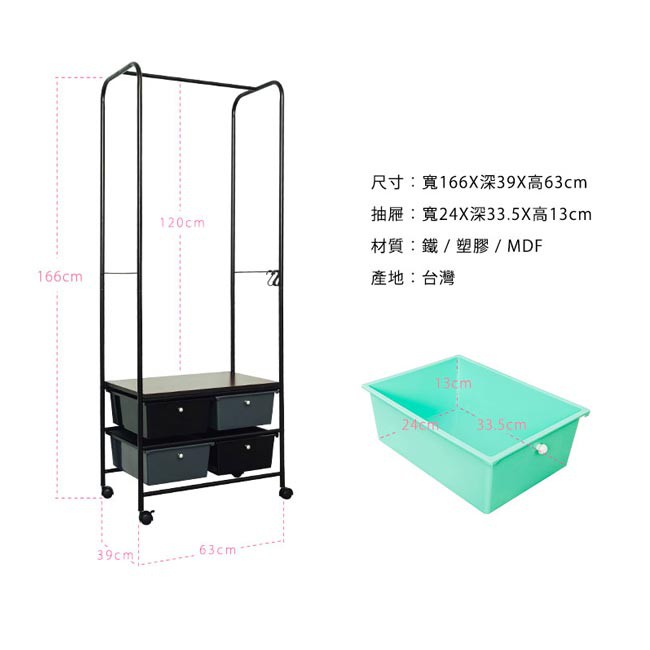 dayneeds 黛西移動式衣架 角落架/吊衣架/曬衣架/毛巾架/展示架/抽屜櫃/衣帽架黑色|白色Hangers & Pegsdayneeds收納生活館