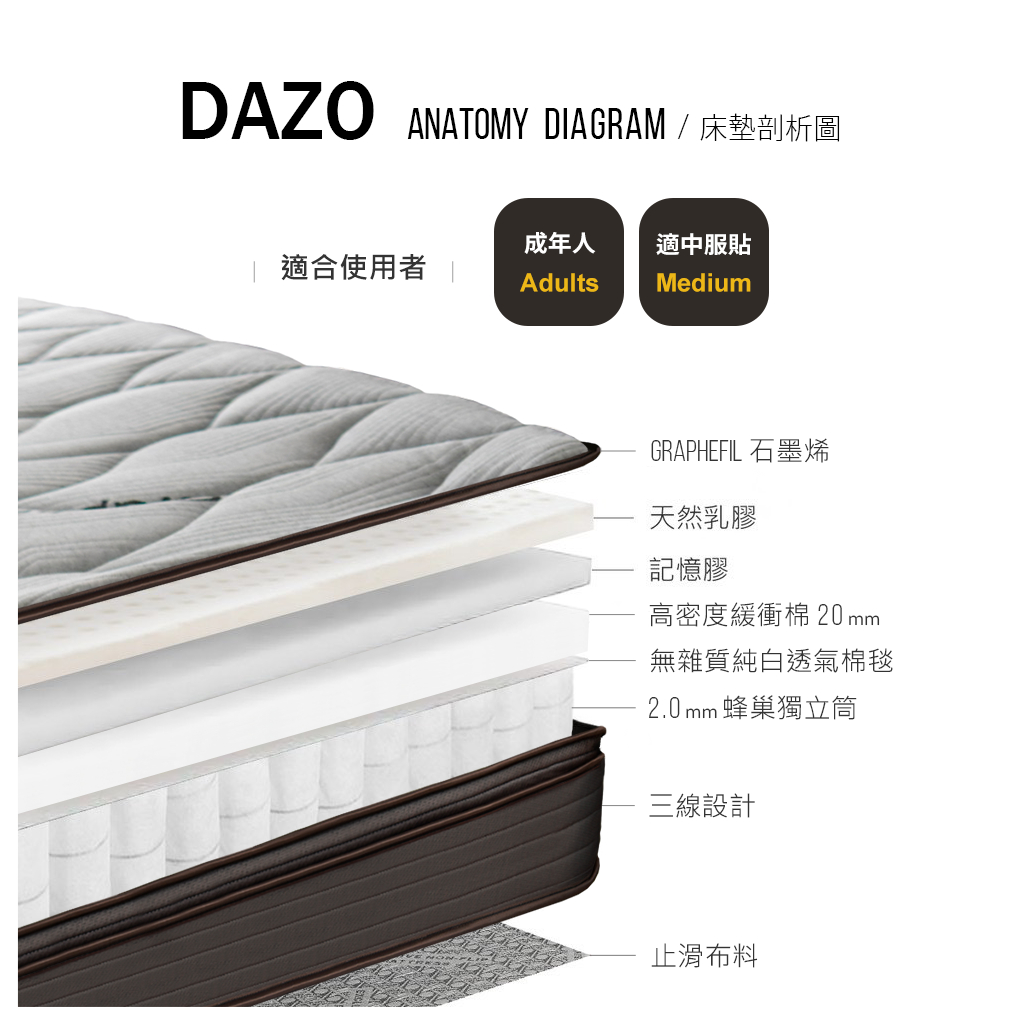 【 Dazo 】適中服貼|真三線 石墨烯 Graphefil 乳膠 記憶膠 蜂巢獨立筒床墊 免運 台灣製【蝦幣10倍送】單人加大 3.5 尺|標準雙人 5 尺|雙人加大 6 尺MattressesDazo 得舒官方旗艦店