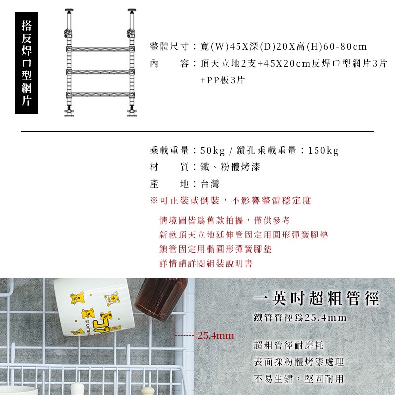 dayneeds 頂天立地廚房/桌上型烤漆收納架 搭45×20ㄇ型網片3片(附PP板3片) 兩色可選】置物架/廚櫃下可用黑色|白色Shelves & Racksdayneeds收納生活館