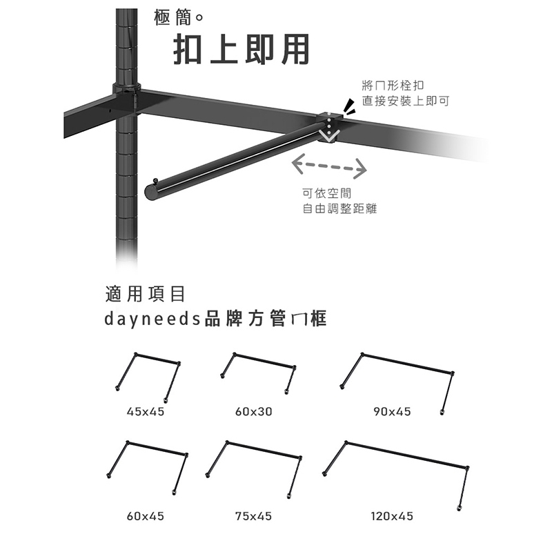 dayneeds 方管ㄇ框專用 吊衣桿 兩色可選黑色|白色Shelves & Racksdayneeds收納生活館