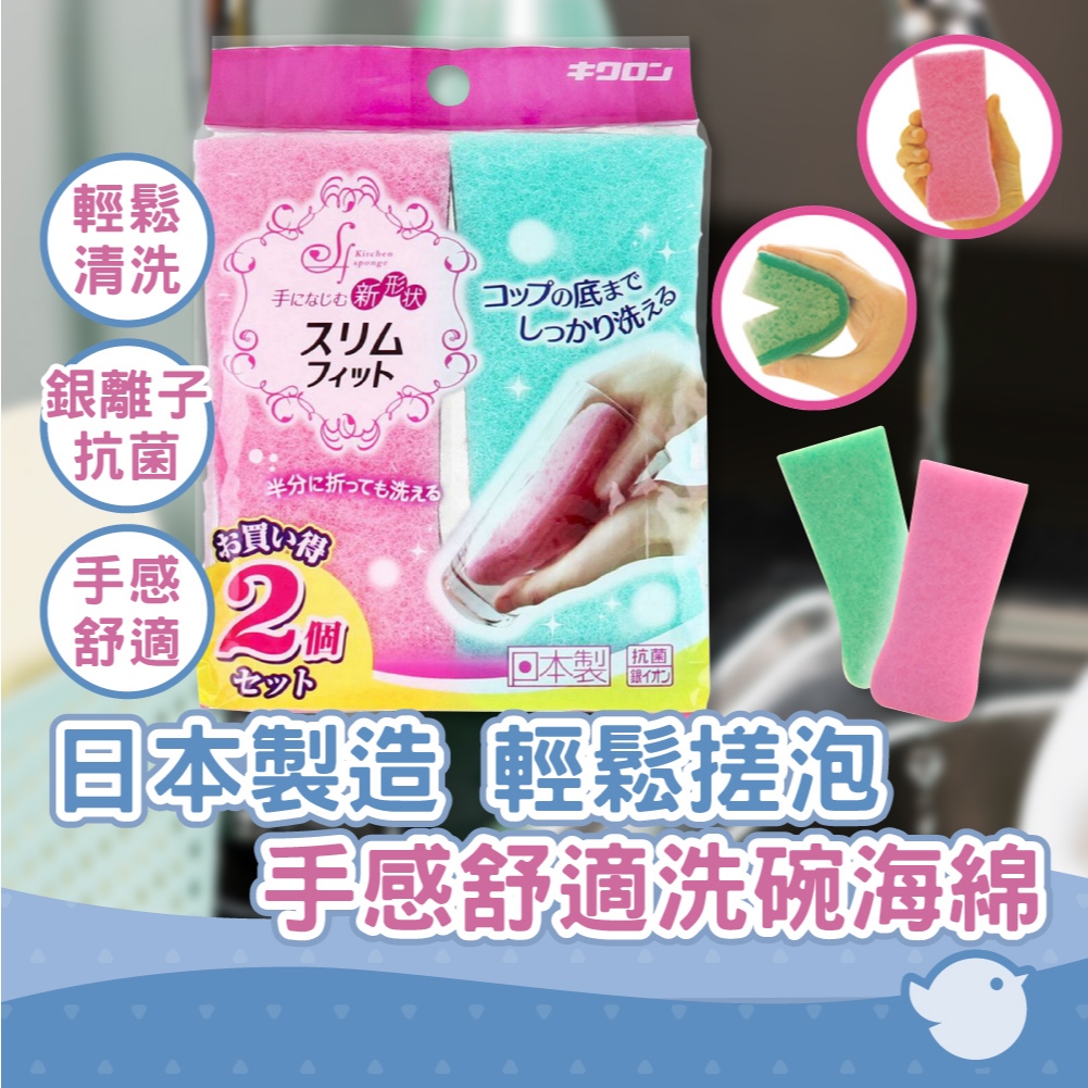 【CHL】KIKULON 日本製造 輕鬆搓泡 手感舒適洗碗海綿 2件裝 餐具 杯 清潔 器皿 去污漬 洗滌用品 細緻泡沫