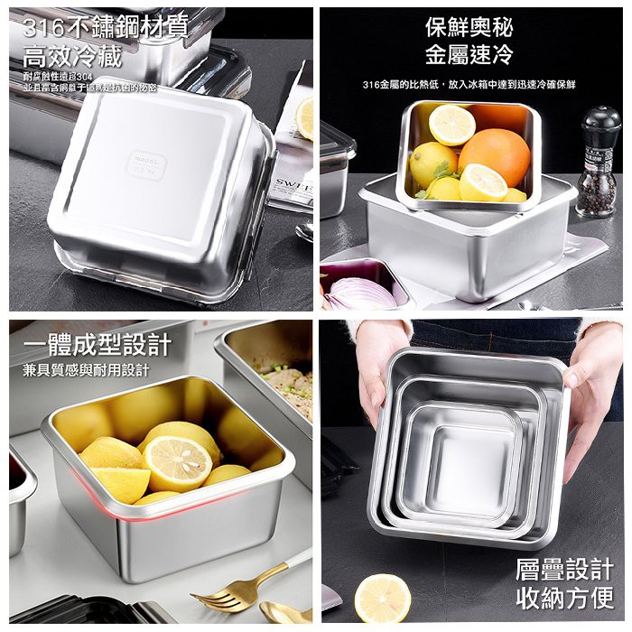 【安酷生活】三件組 頂級316不鏽鋼 保鮮盒 316不鏽鋼 防漏 便當盒 不鏽鋼 露營 野餐 便當 收納正方形三件組|長方形三件組Food StorageChuLoveU 啾愛你