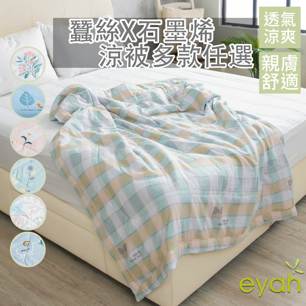 【eyah】任選 蠶絲x石墨烯鋪棉涼被四季被 150x180cm (水洗綿工藝) 舒適透氣 材質柔順 空調被 四季被花晨綠葉下|秋風過|冰糖檸檬|趕快數羊|飄散的勇氣|整齊農田Blankets, Comforters & Quiltseyah宜雅居家美學