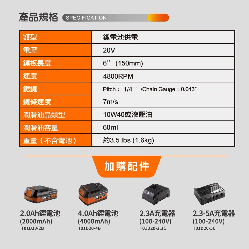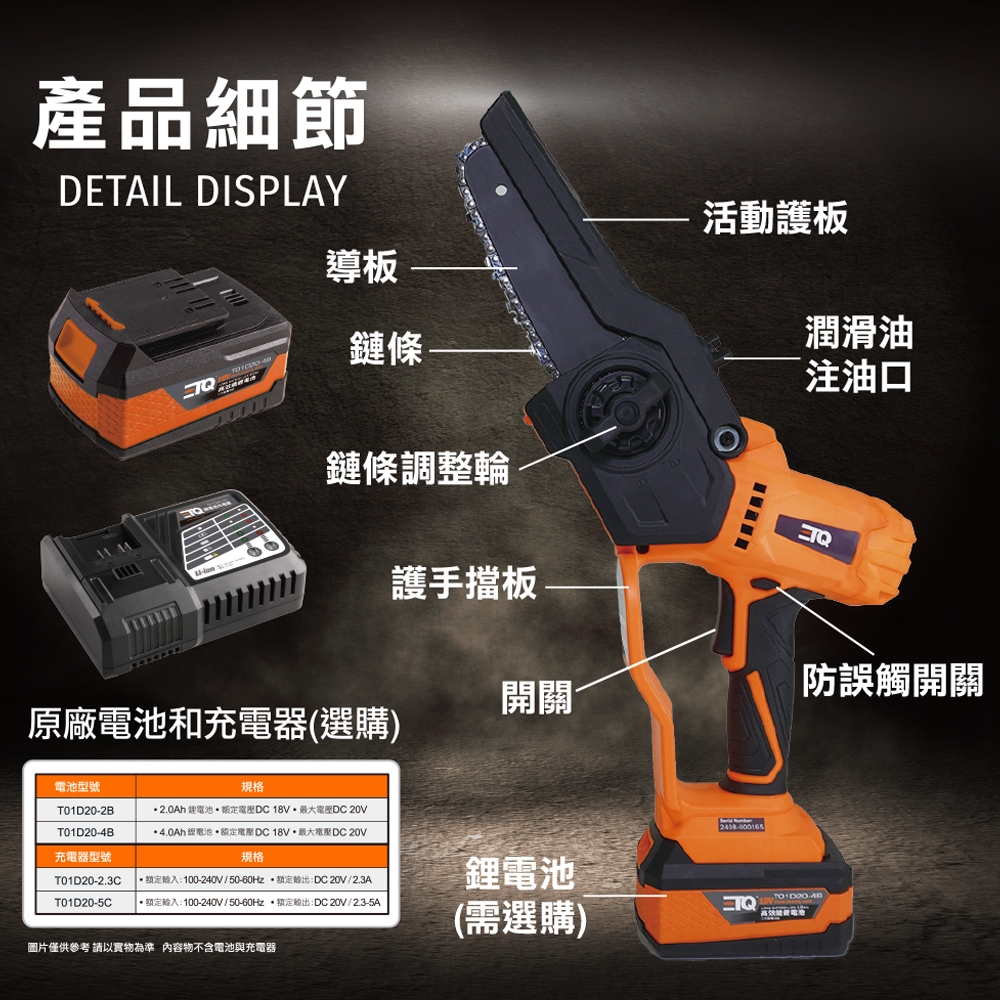 【ETQ USA】20V鋰電迷你鏈鋸 / 6吋 手持 鏈鋸機20V鋰電迷你鏈鋸(空機)|2.0套裝-2.3C充電器+2.0電池|4.0套裝-2.3C充電器+4.0電池|快充套裝組-5C快速充電器+4.0電池ToolsETQ USA 美國專業工具暢銷品牌