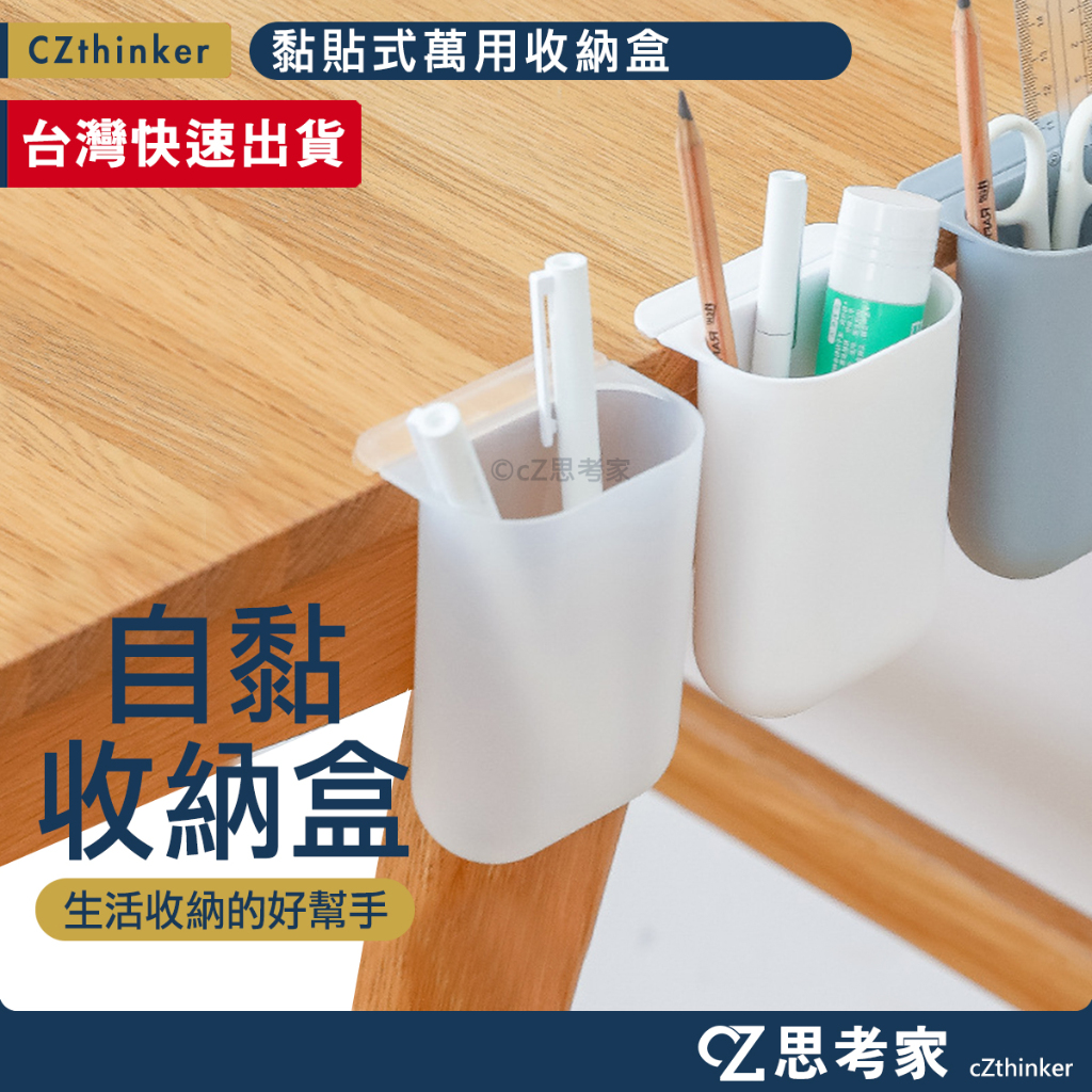 黏貼式萬用收納盒 筆筒 自黏收納盒 桌面收納盒 桌邊收納盒 文具收納 餐具收納白|灰|透明Desk OrganizerscZ思考家 – 3C手機配件