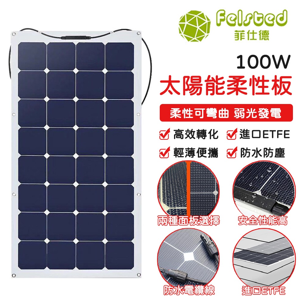【Felsted菲仕德】太陽能板 發電板 柔性板 100W太陽能充電板 房車電動車車頂改造發電半柔性太陽能板GSFX100W【半柔性可彎曲】ToolsFelsted菲仕德官方旗艦店_家電館