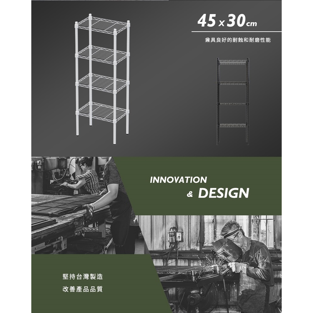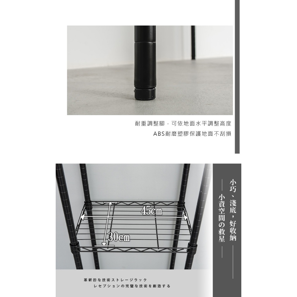 dayneeds 輕型45x30x120四層架-兩色 鐵力士架 收納架 廚房架 置物櫃黑色|白色Shelves & Racksdayneeds收納生活館