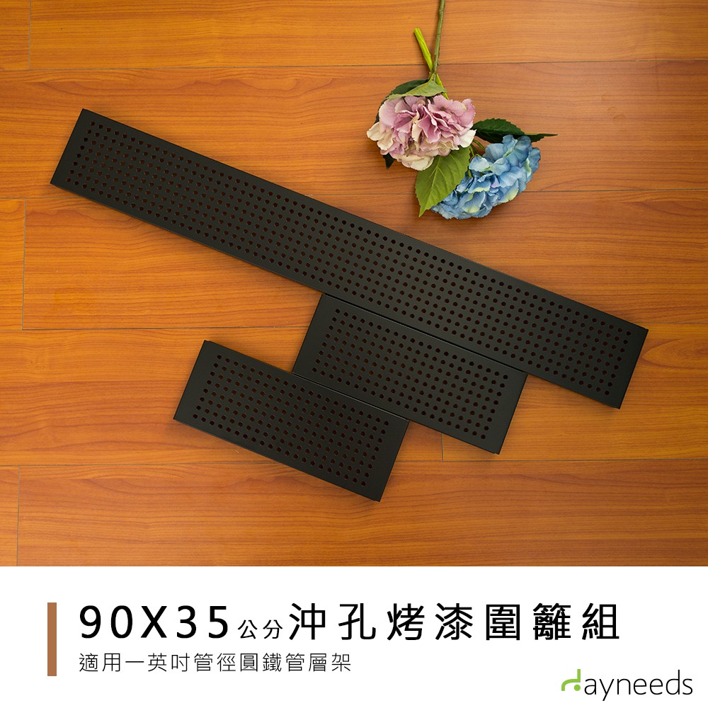 dayneeds 層架兩用沖孔板圍籬組90+35cm(烤漆黑)圍籬 檔板 沖孔架波浪架一寸管層架都適用