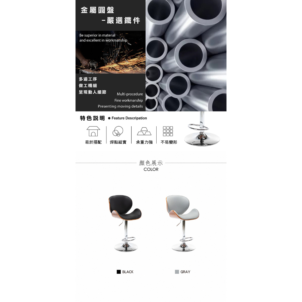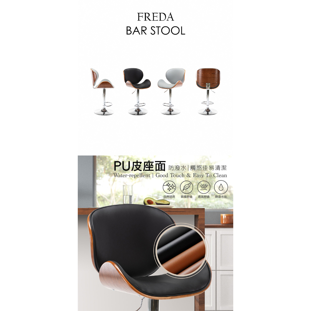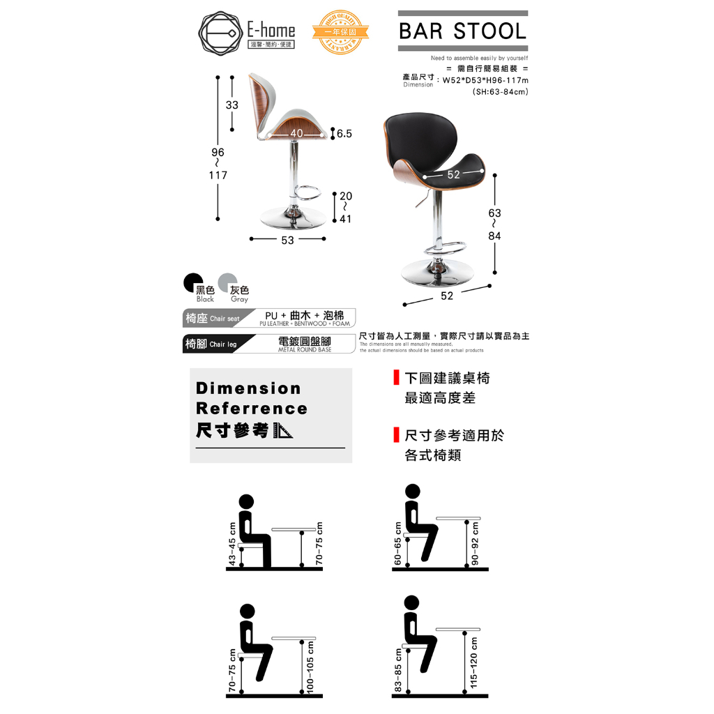 E-home 弗蕾達曲木吧臺椅 高腳椅 升降椅 餐桌椅 椅子 吧台椅黑色|灰色Benches, Chairs & StoolsE-home 美規設計傢俱
